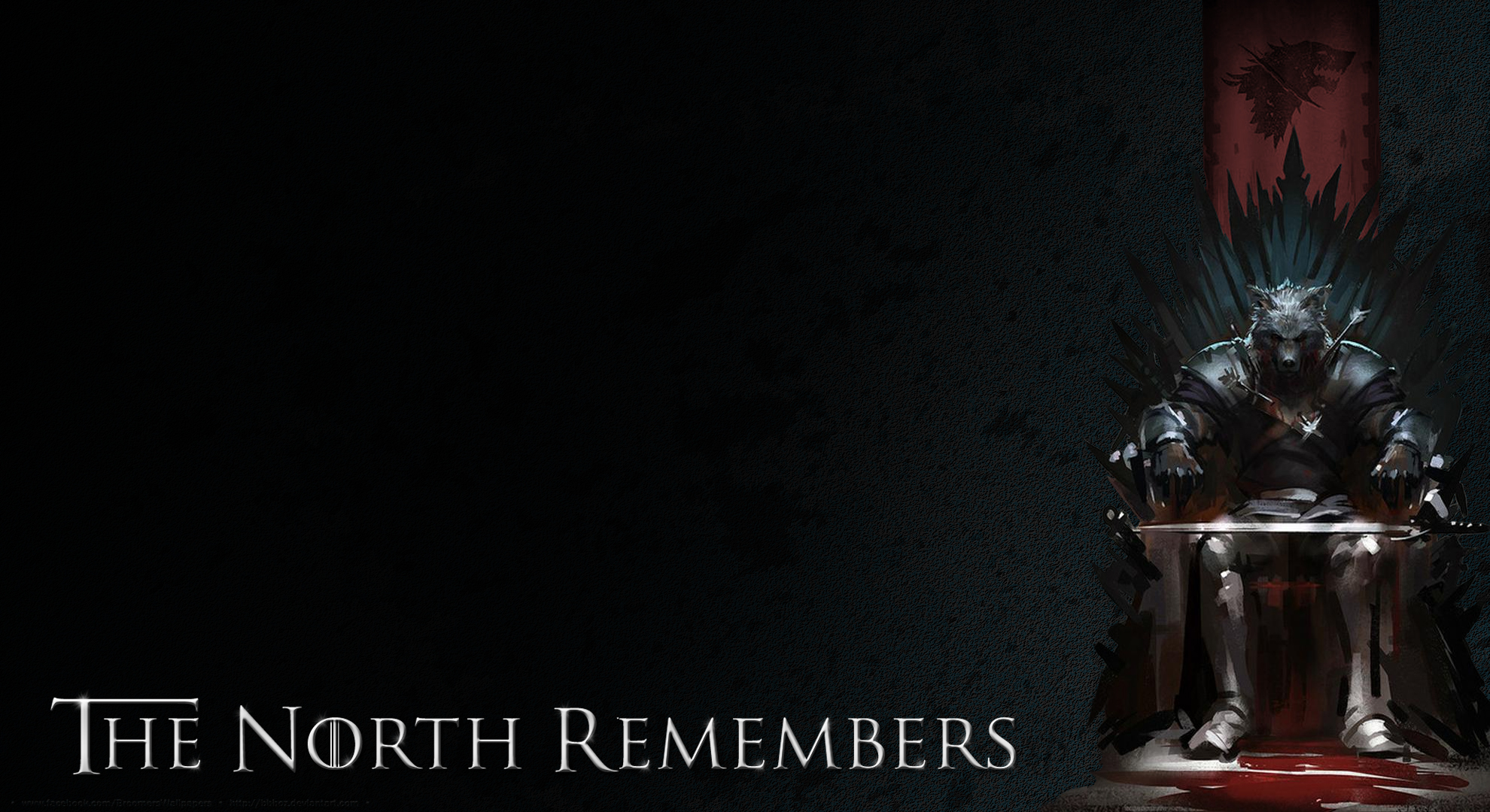 Description: A statue of a knight sitting on a throne with a flag behind it that says the north remembers on it.