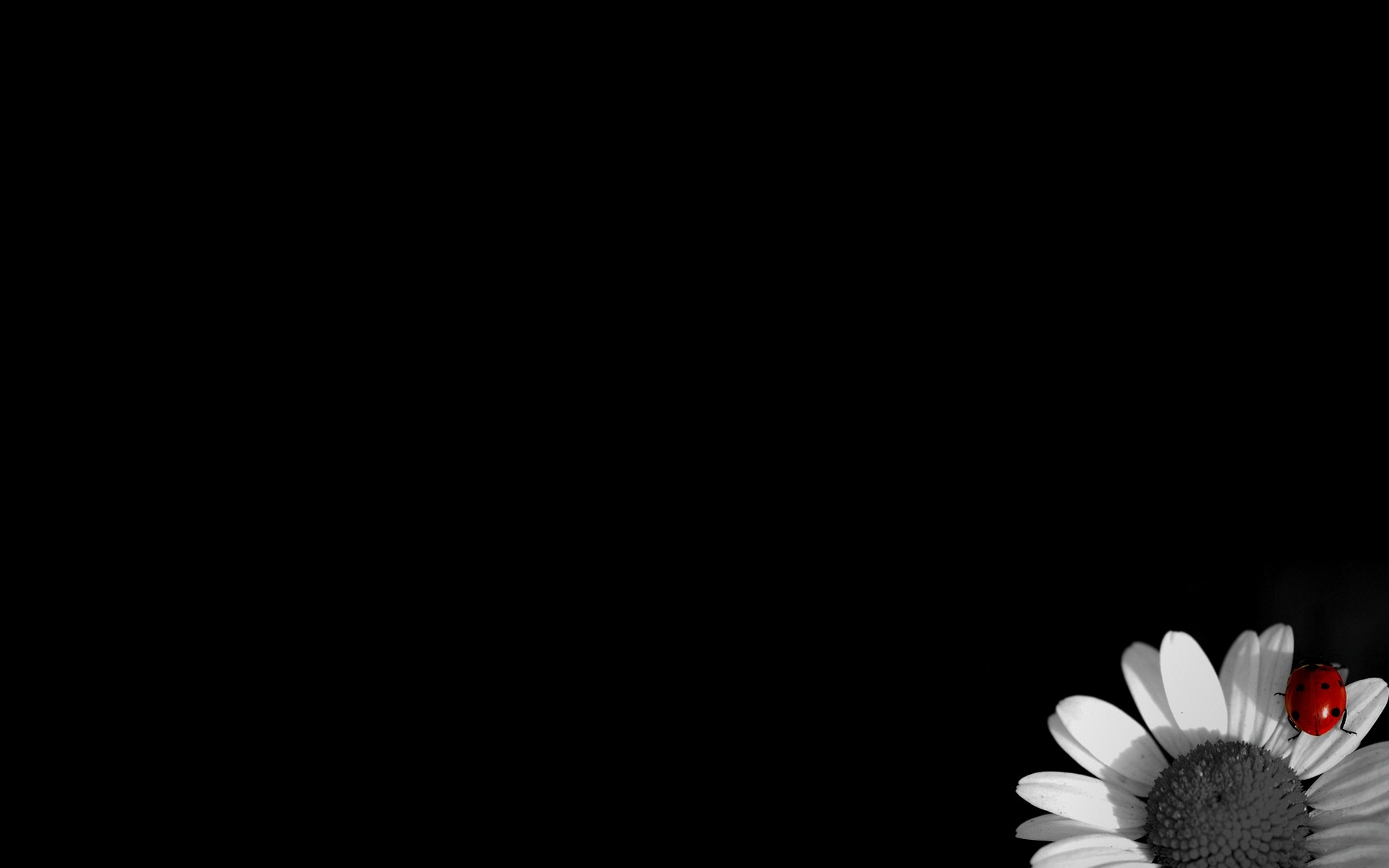 Description: A ladybug sitting on a flower in the dark with a black background and a red ladybug on the flower.