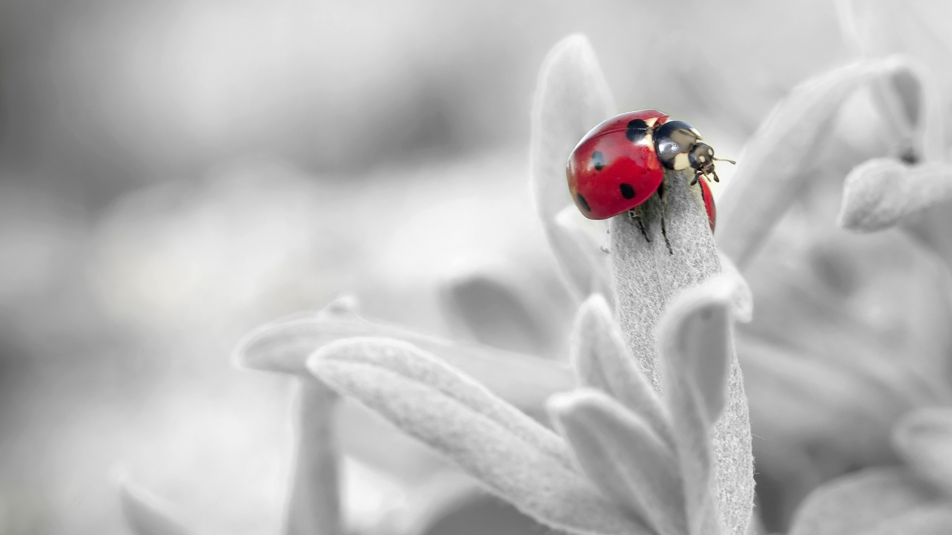 Description: A ladybug sitting on a flower with a blurry background of flowers in the background.