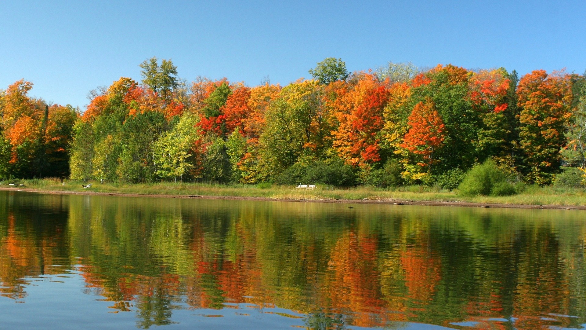 Lake autumn trees blue sky - free wallpaper for desktop | 5desktop.com