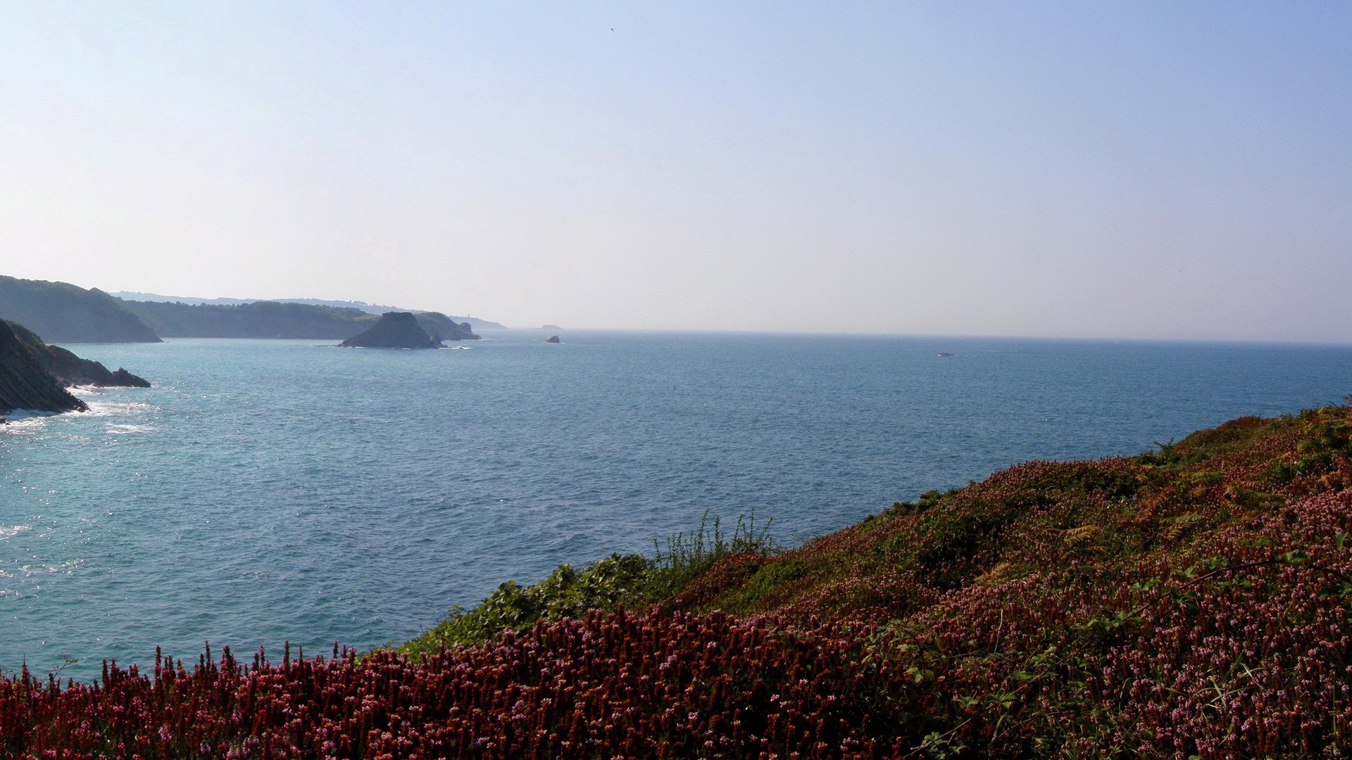 Description: A view of a body of water with a hill in the background and a boat in the water on the water.
