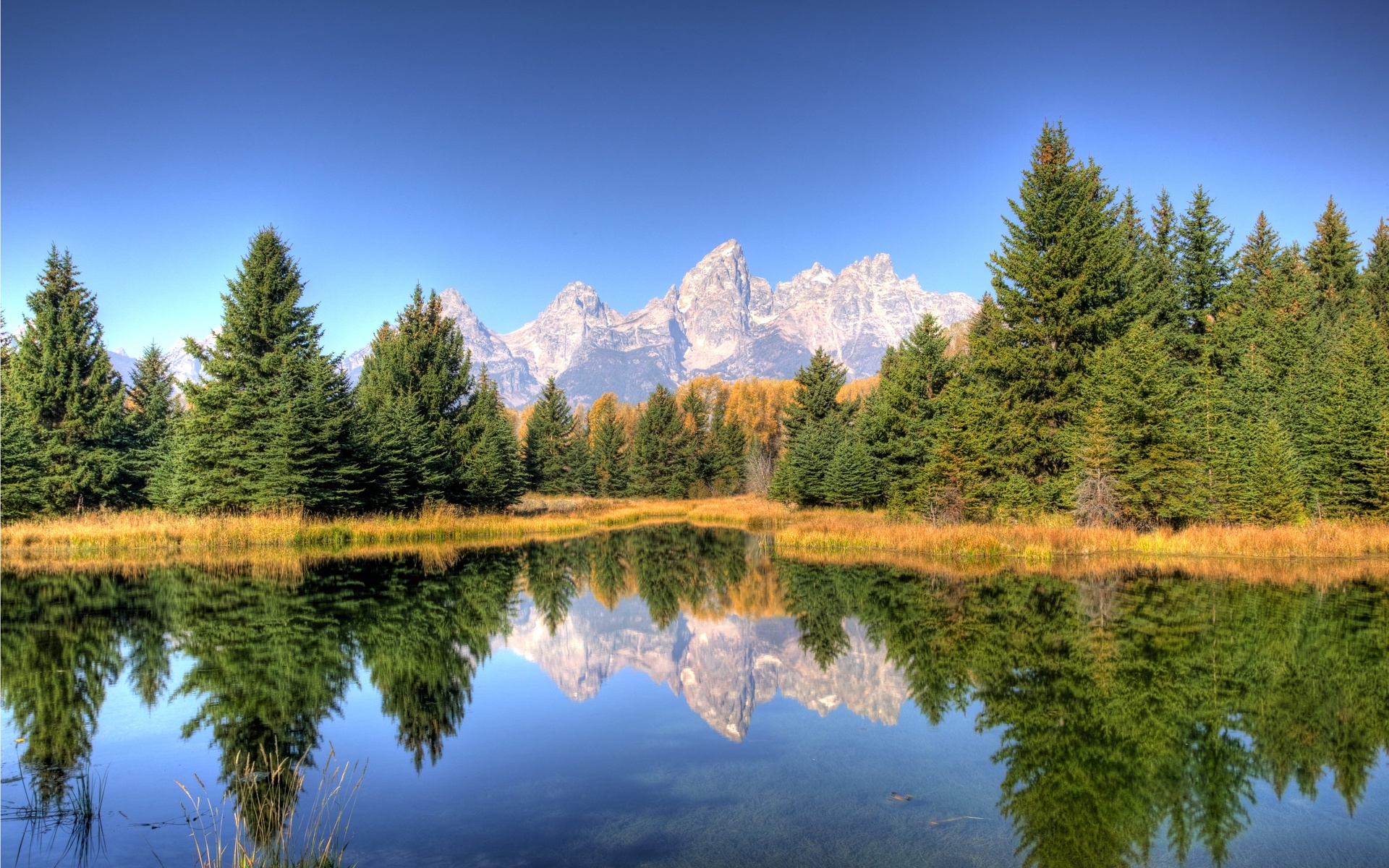 Description: A lake surrounded by trees and mountains with a blue sky in the background and a few clouds in the sky.