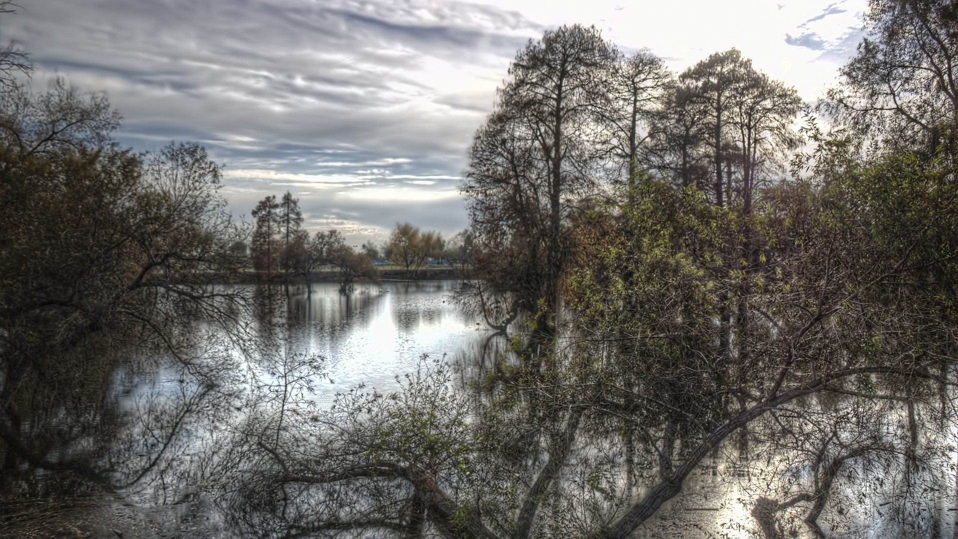 Description: A lake surrounded by trees and a cloudy sky above it is a picture of a lake surrounded by trees and a cloudy sky above it is a lake.