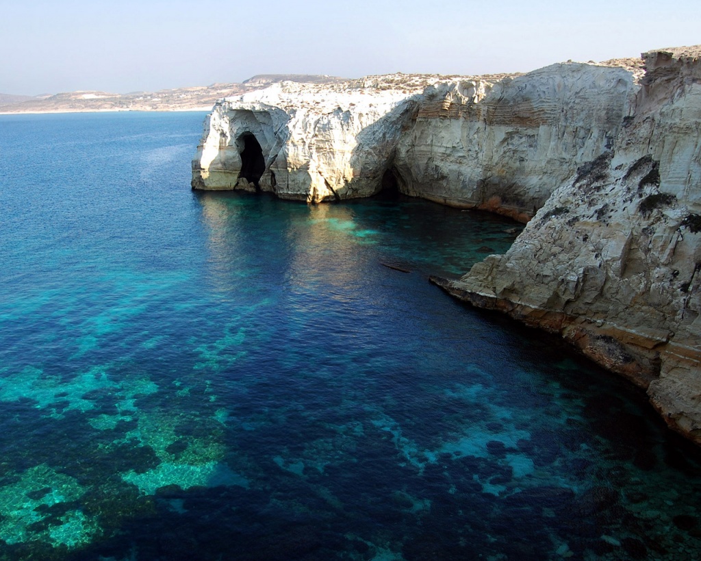 Description: A large body of water with a cave in the middle of it and a rocky cliff in the background.