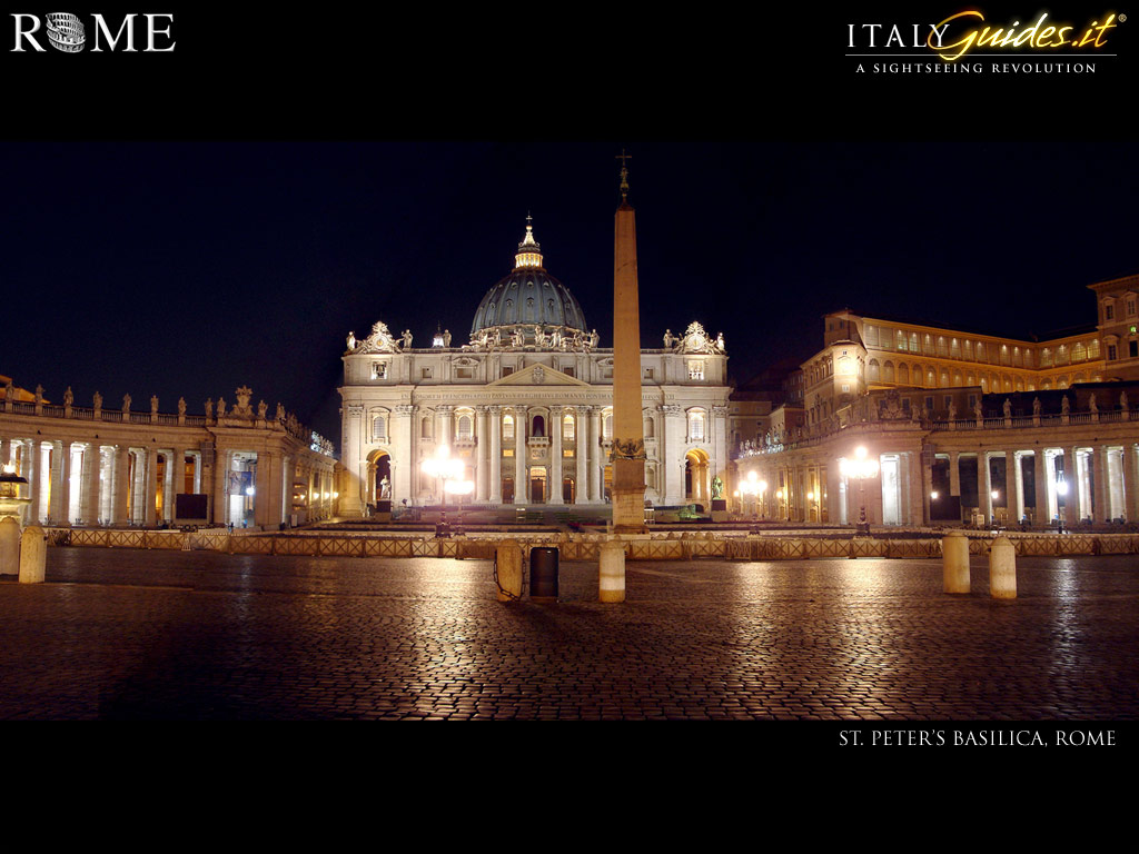 Description: A large building with a dome and columns in front of it at night time with lights on the building.