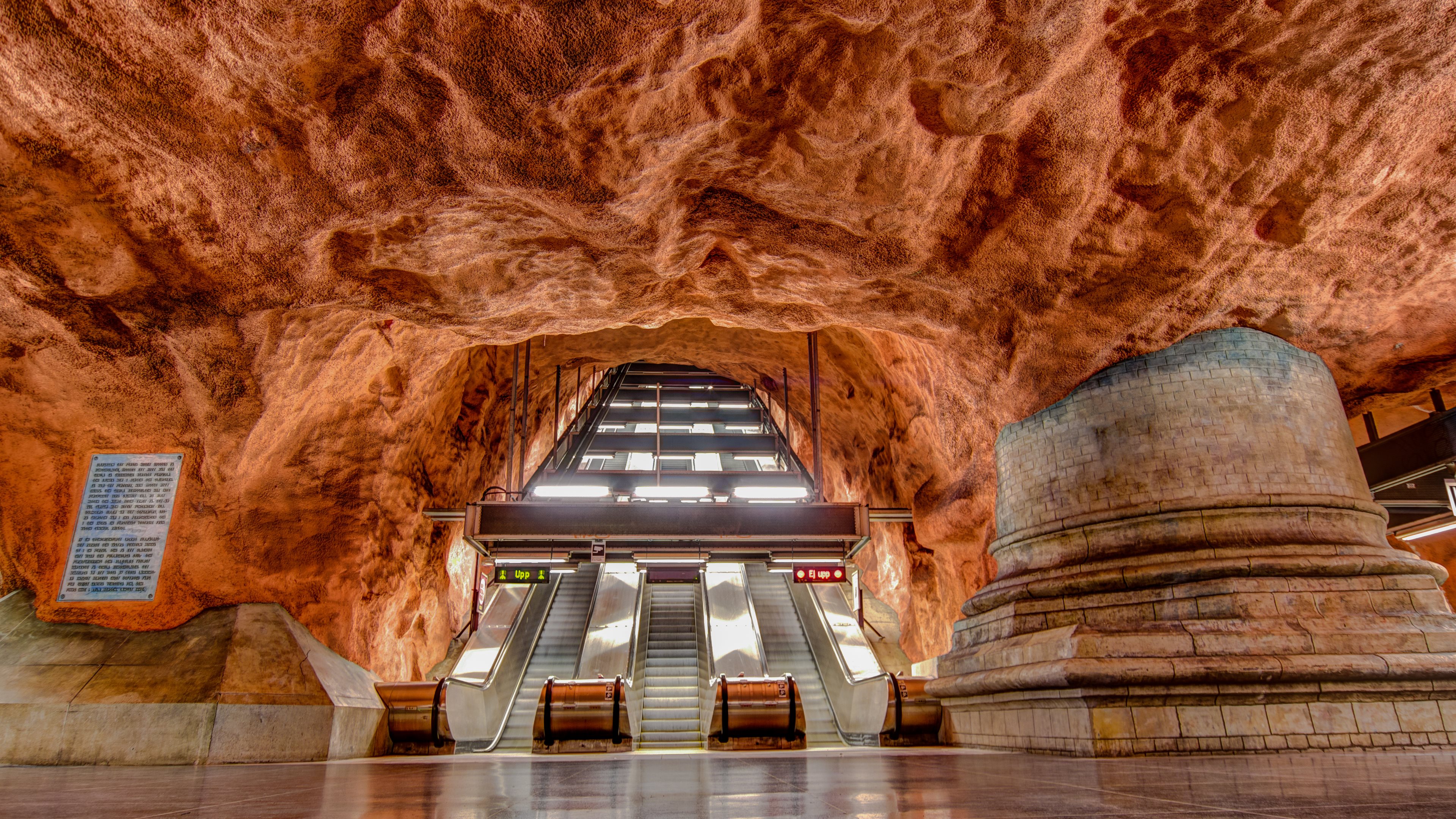 Description: A large building with a long escalator in it's center and a skylight above it.