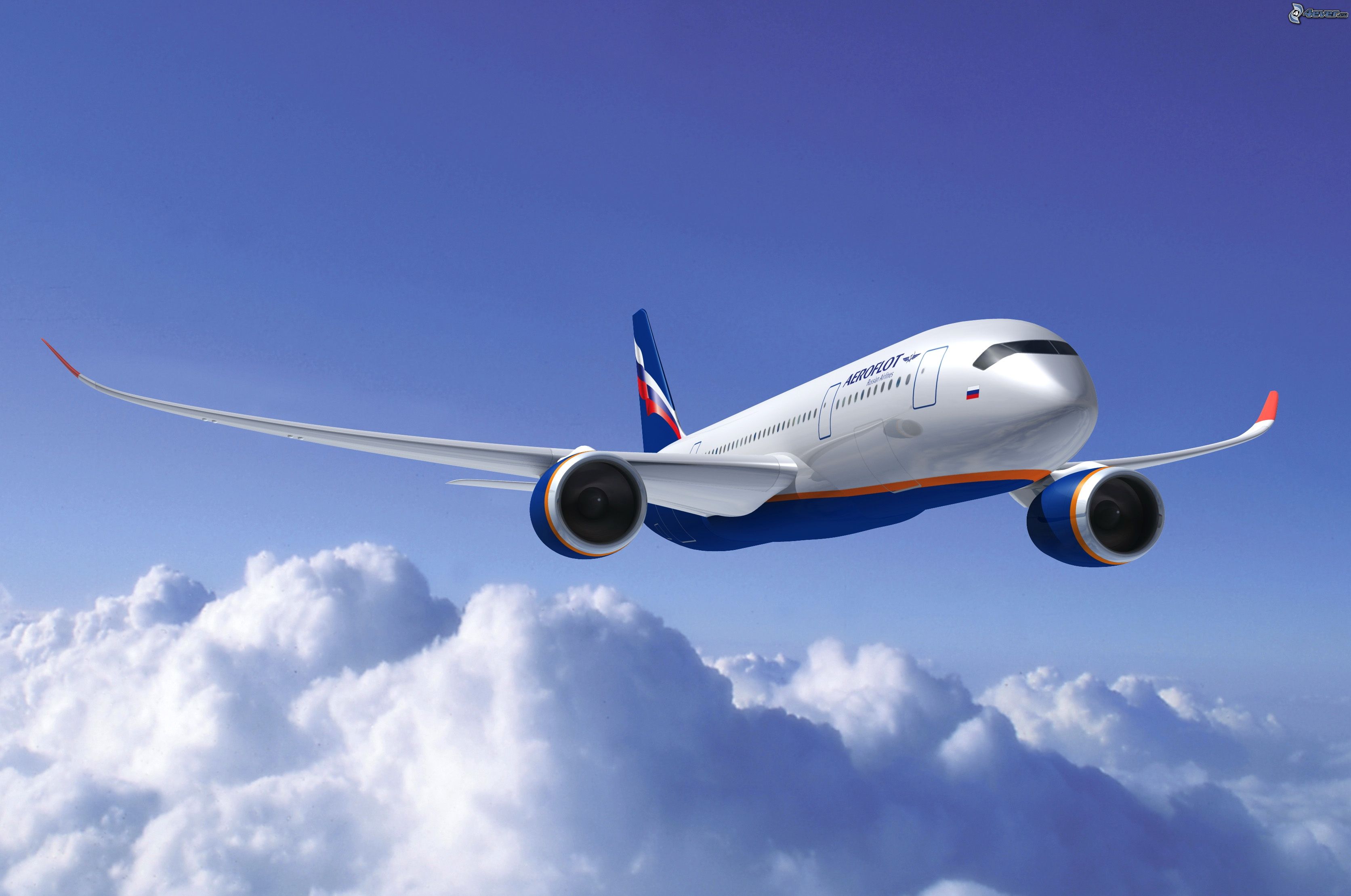 Description: A large jetliner flying through a blue sky above clouds and clouds below it is a jetliner with a blue tail.