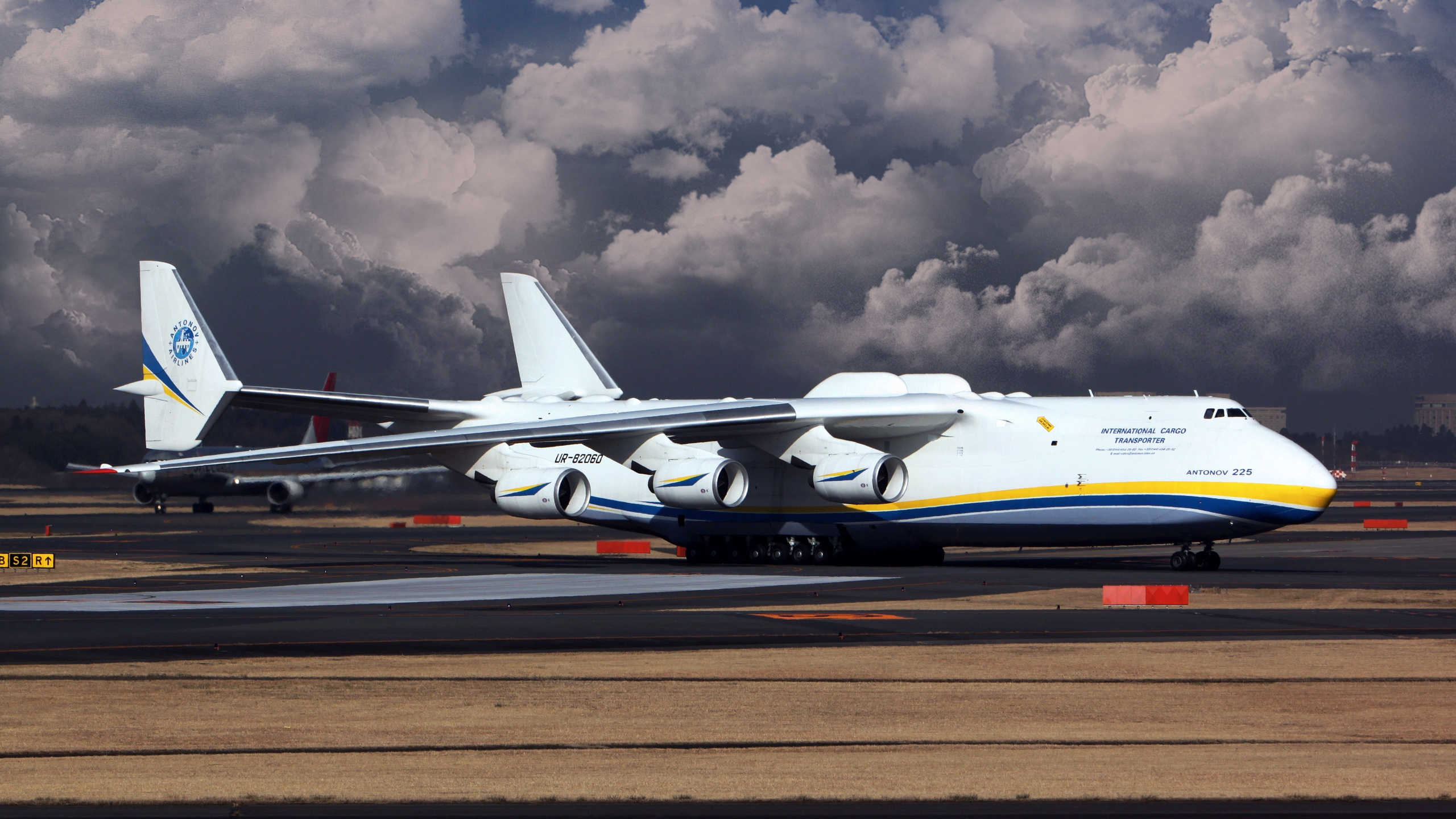 Description: A large jetliner sitting on top of an airport runway under a cloudy sky with clouds above it and a plane on the ground.