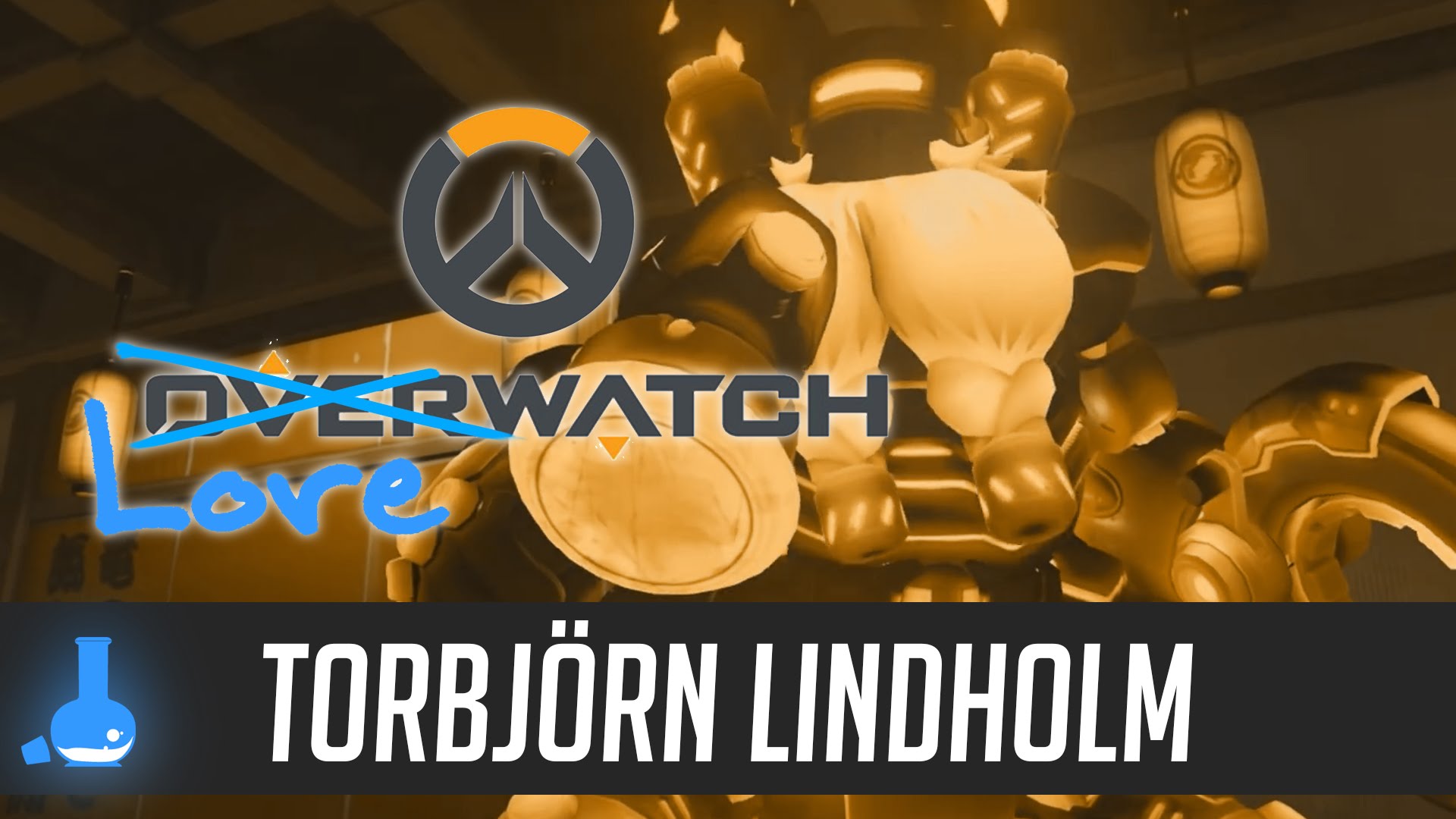 Description: A large metal object with a blue and yellow logo on it's side and the words overwatch love.