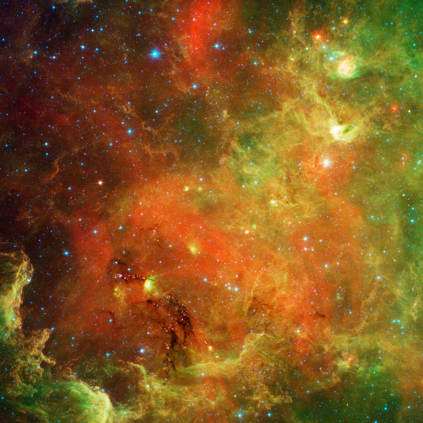 Description: A large star cluster in the middle of a large star cluster in the sky with many stars all around it.