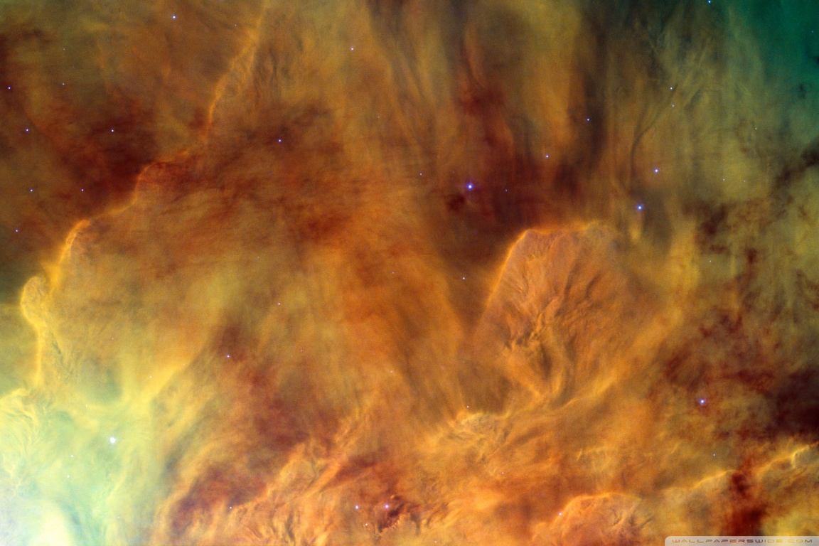 Description: A large star cluster in the sky with a bright orange and yellow background and stars in the sky above.