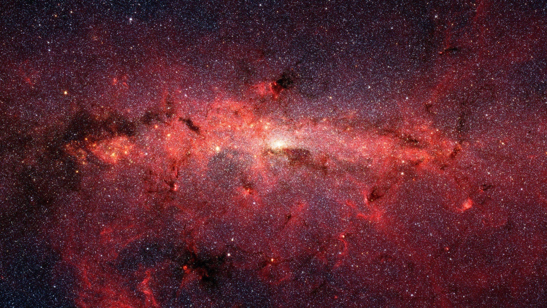 Description: A very large star cluster in the sky with a bright red center and a black center.