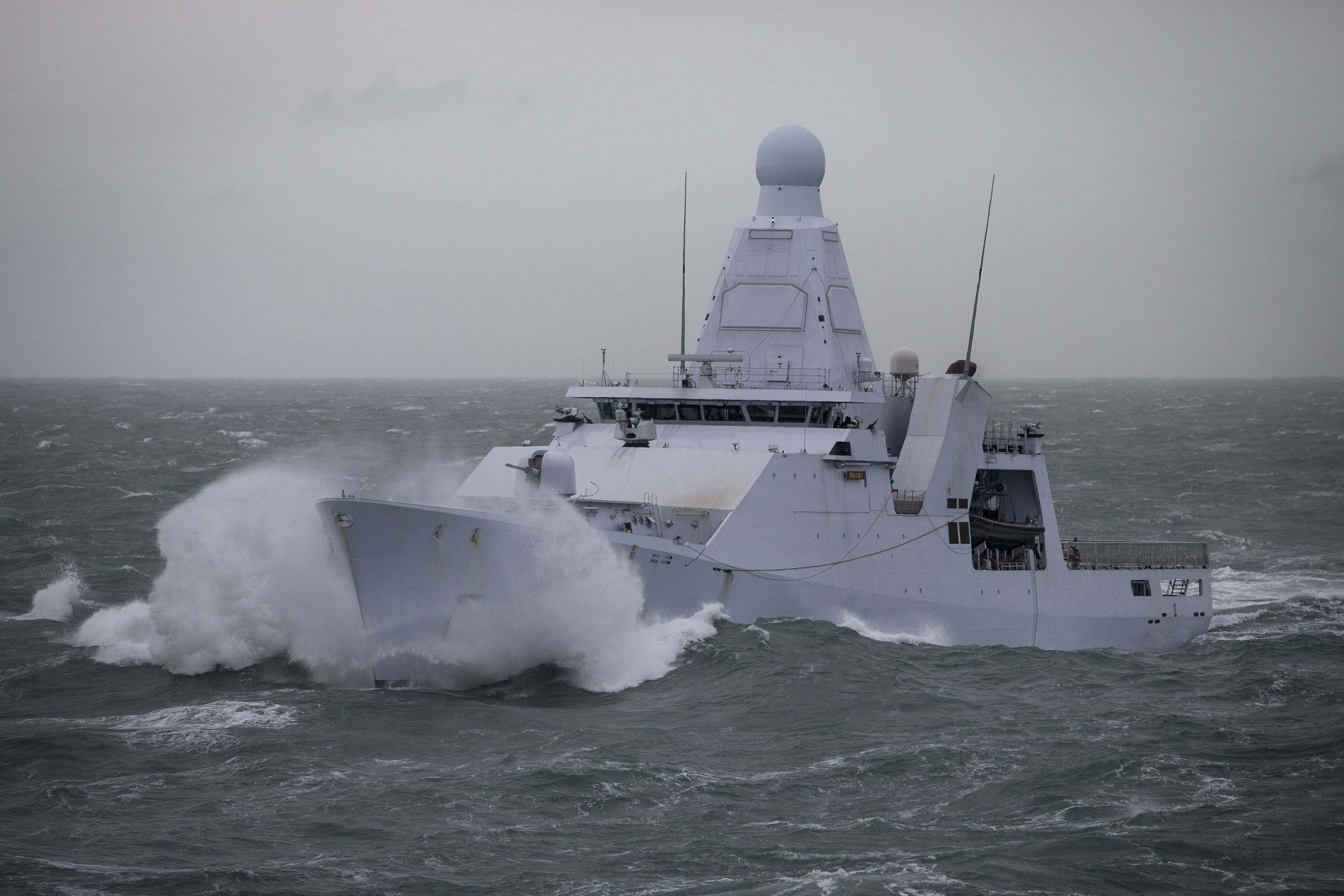 Description: A large white boat in the middle of the ocean with a boat in the background and a boat in the water.