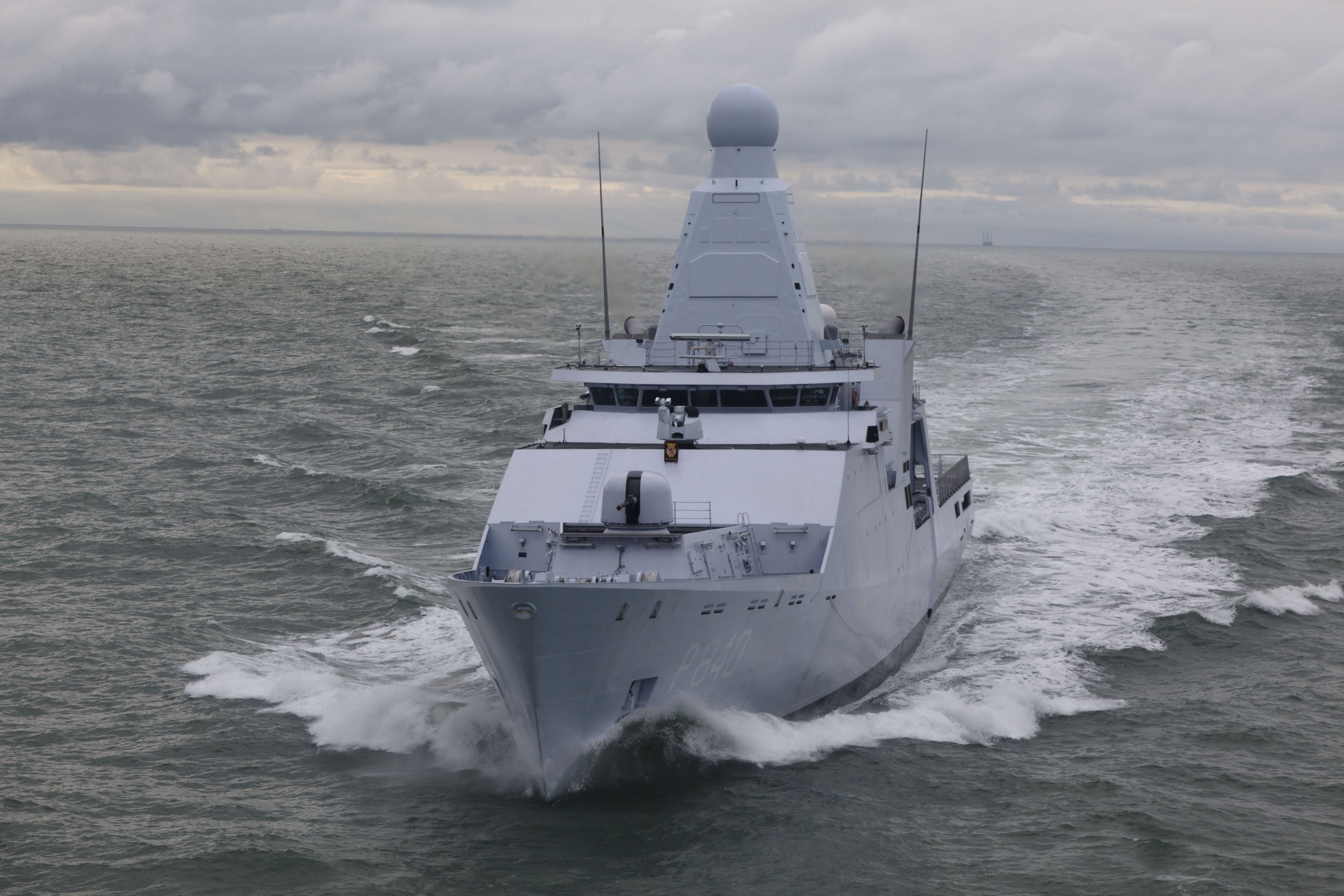 Description: A large white boat in the middle of the ocean on a cloudy day with a few clouds in the sky.