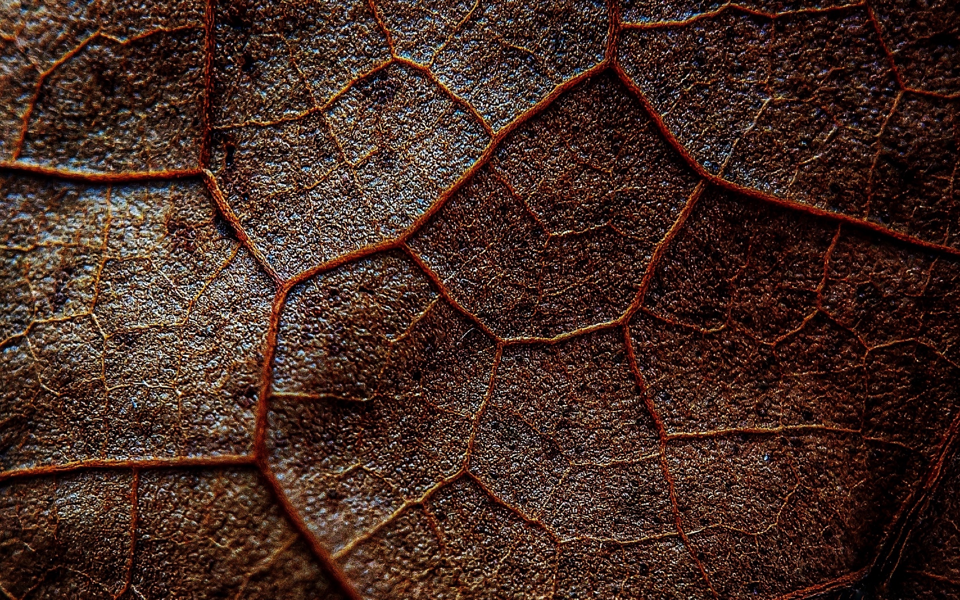 Description: A close up of a leaf with a brown color and a pattern on it's surface.
