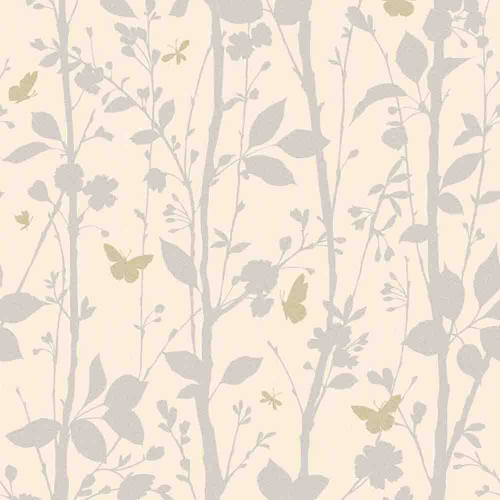 Description: A wallpaper with a pattern of leaves and flowers on it.
