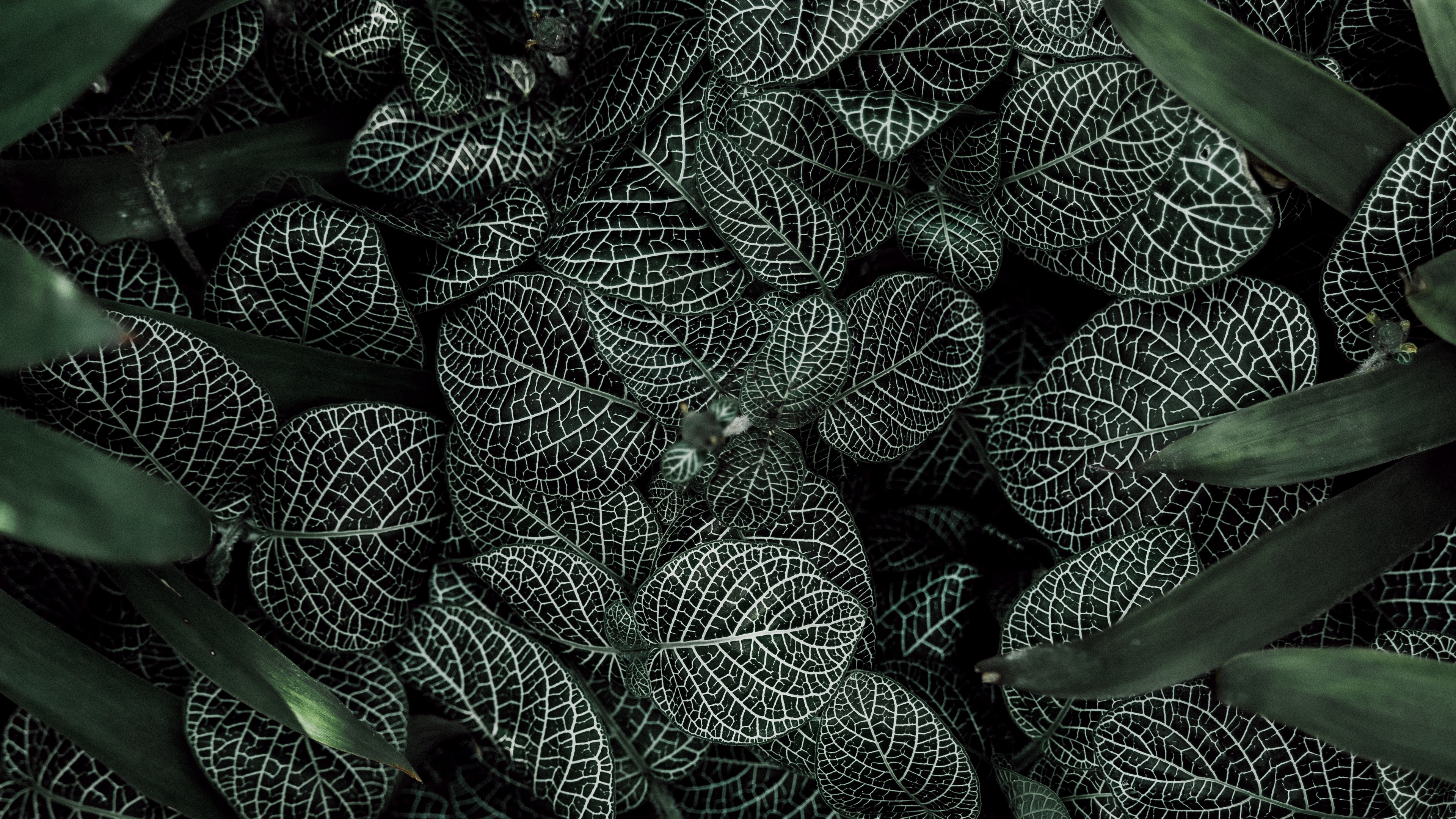 Description: A close up of a bunch of leaves with a black background and a white border around the leaves and the top of the leaves.