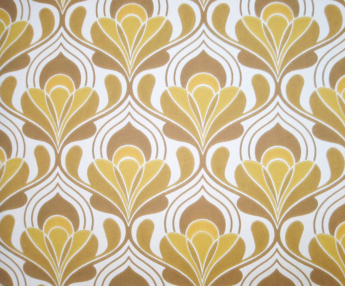 Description: A wallpaper with a pattern of leaves on it's side and a brown and white background with a light brown stripe.
