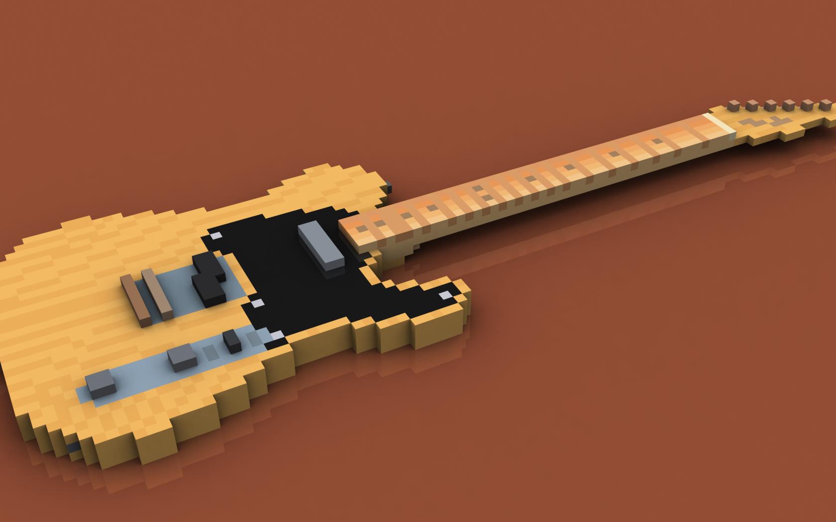 Description: A lego guitar is shown with a black top and neck and neckplates.