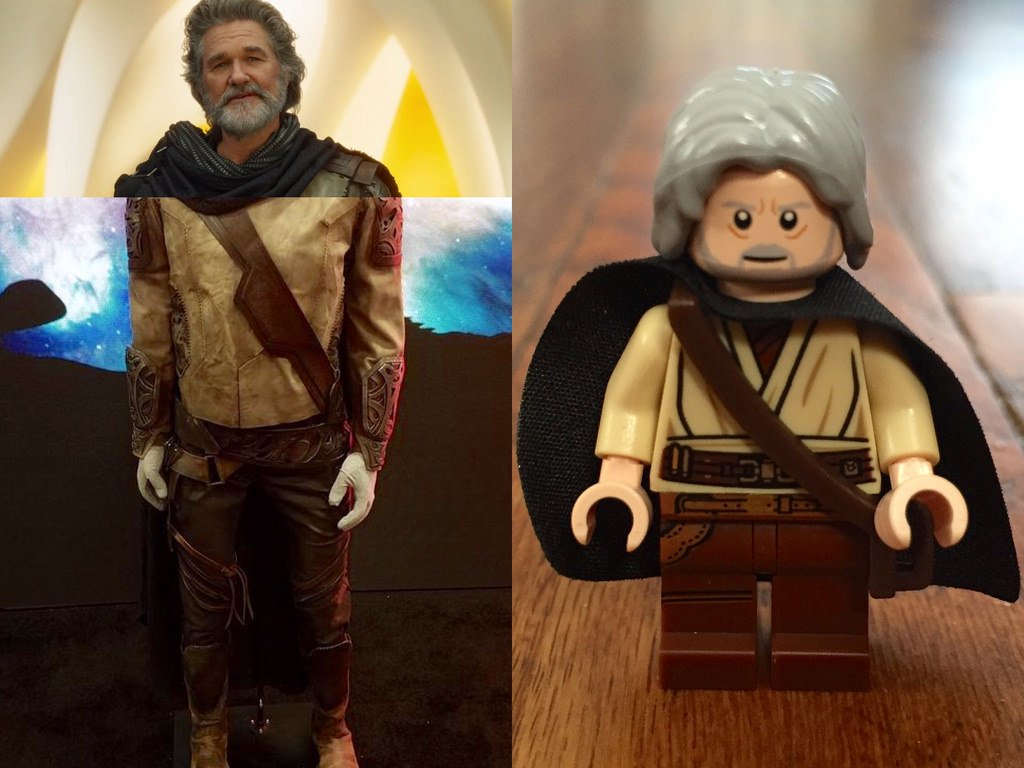 Description: A lego star wars character is posed next to a lego figure of luke star wars character from the movie.
