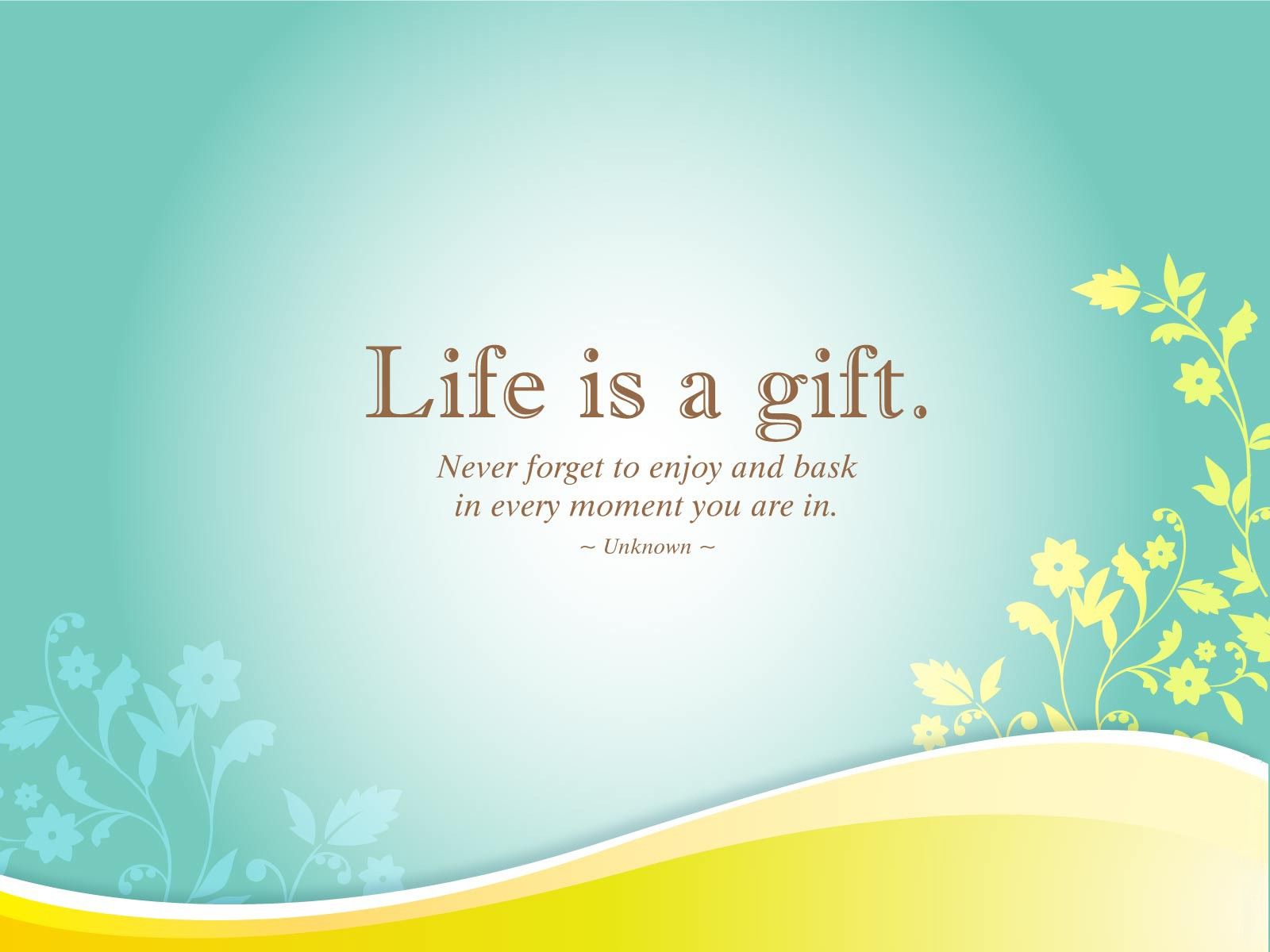 Description: A quote on a blue and yellow background with flowers and leaves on it that says life is a gift.