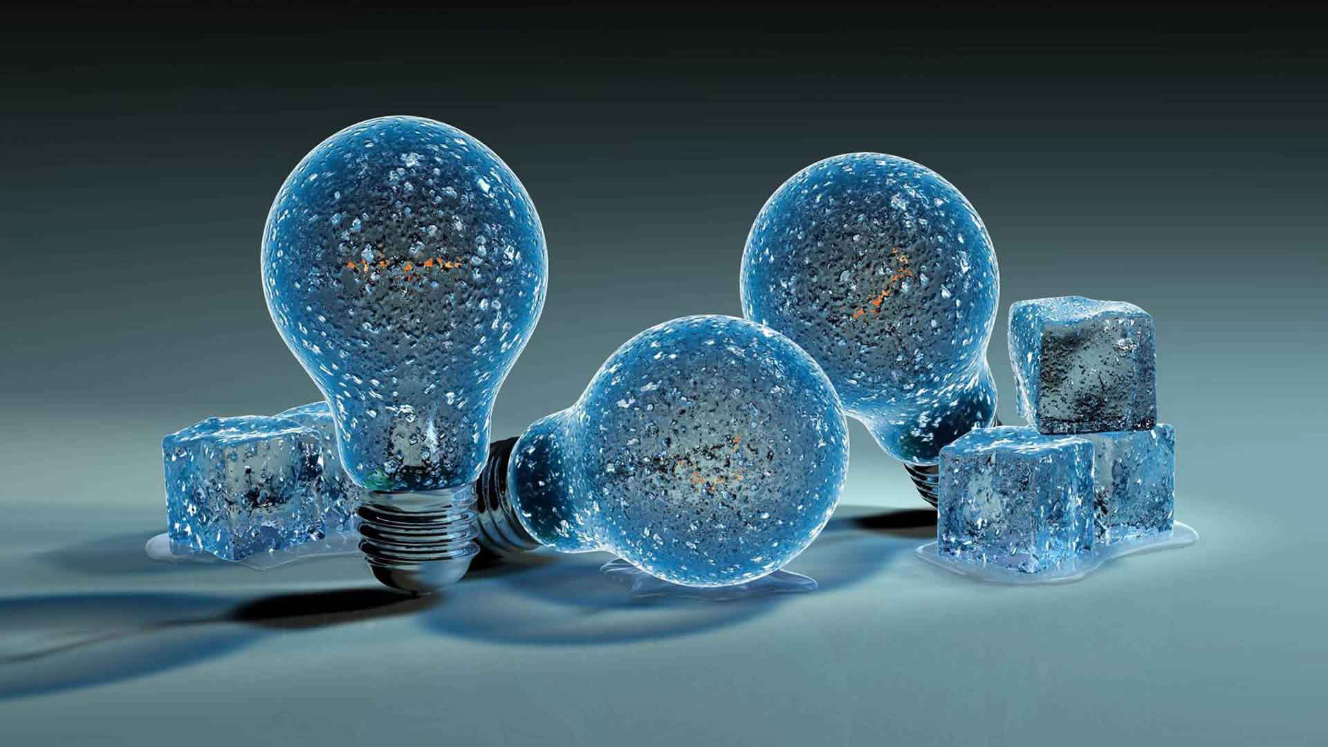 Description: A group of light bulbs sitting on top of a table next to each other on a table top with a light bulb on top of it.
