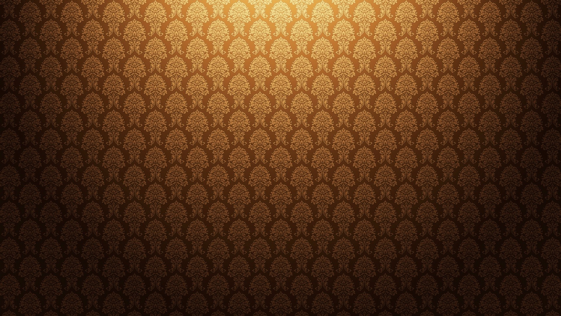 Description: A wall with a light shining on it and a pattern on the wall behind it that is brown and gold.