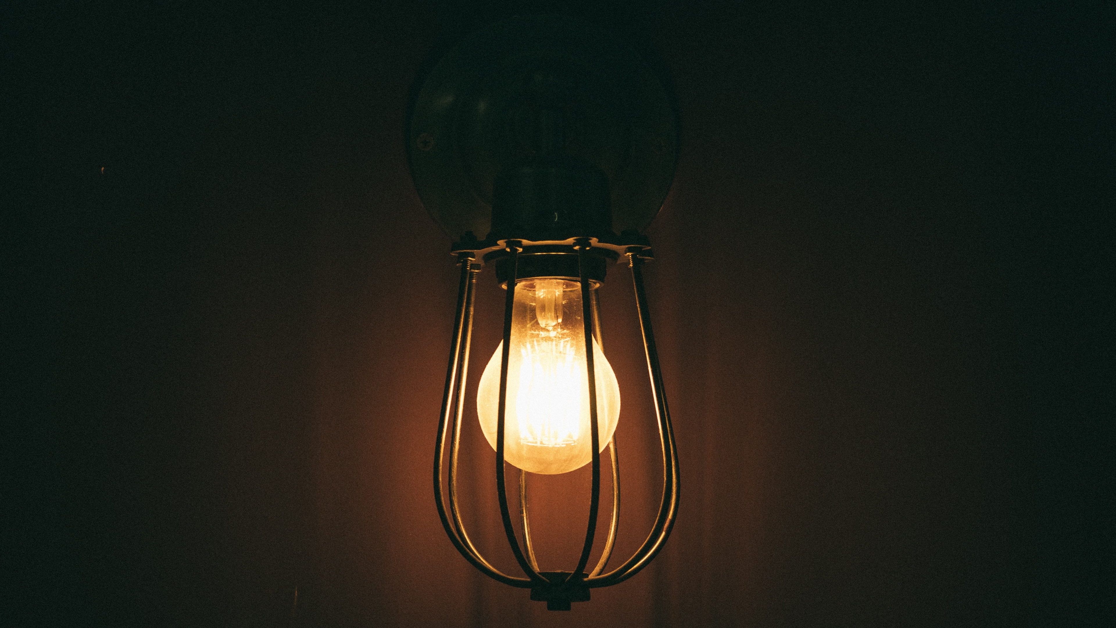 Description: A light bulb is lit up in the dark room of a house.