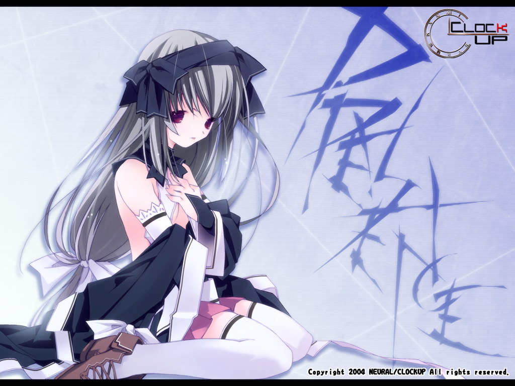 Description: A woman with long hair and an umbrella in a anime scene with a blue background and a white background.