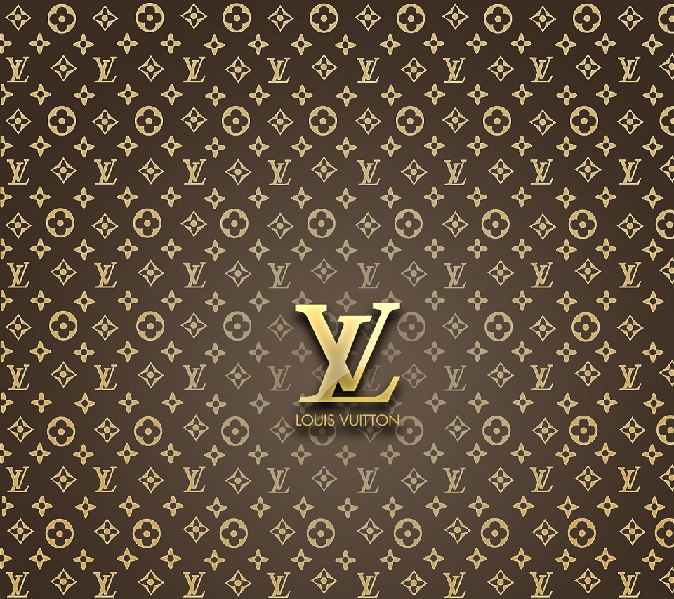 Description: A louis vuitton wallpaper with a gold monogrammed v on it's side and a brown background.