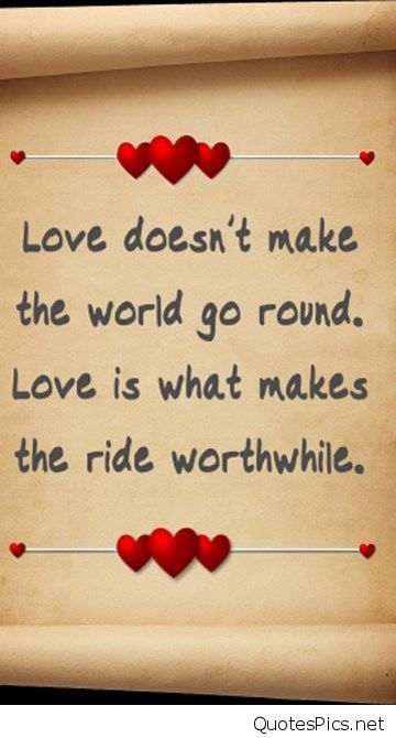 Description: A picture of a quote on love with hearts on a piece of paper with a message below it that says love doesn't make the world go round love is what makes the.