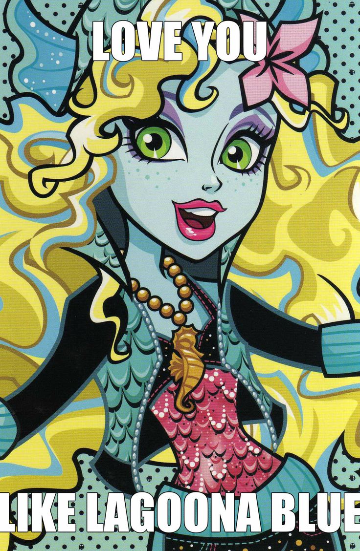 Description: A cartoon character with a pink dress and a bow on her head and a message that says love you like lagoona blue.