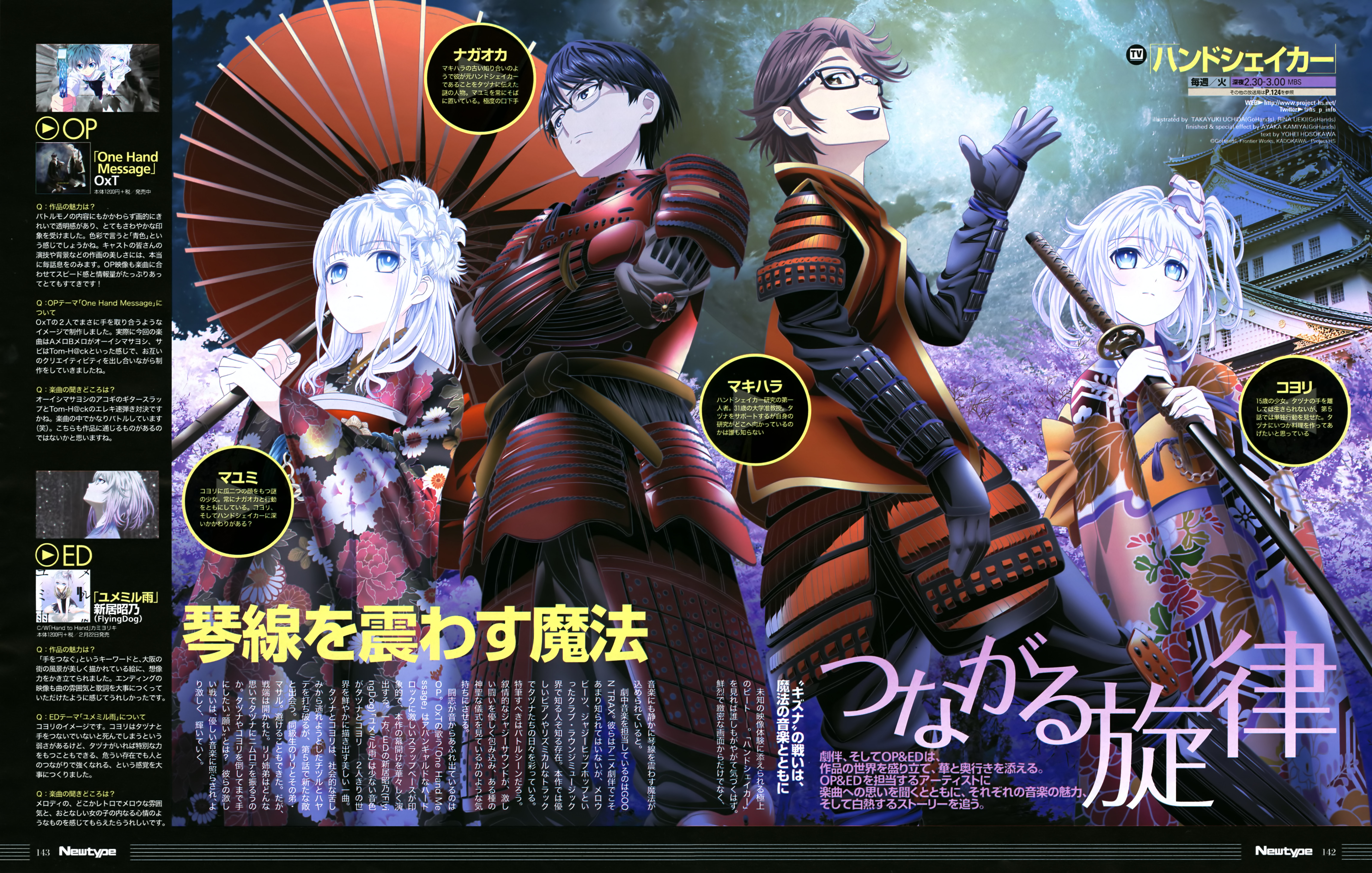 Description: A magazine with a picture of two people in costume and a woman in a kimono holding a fan.