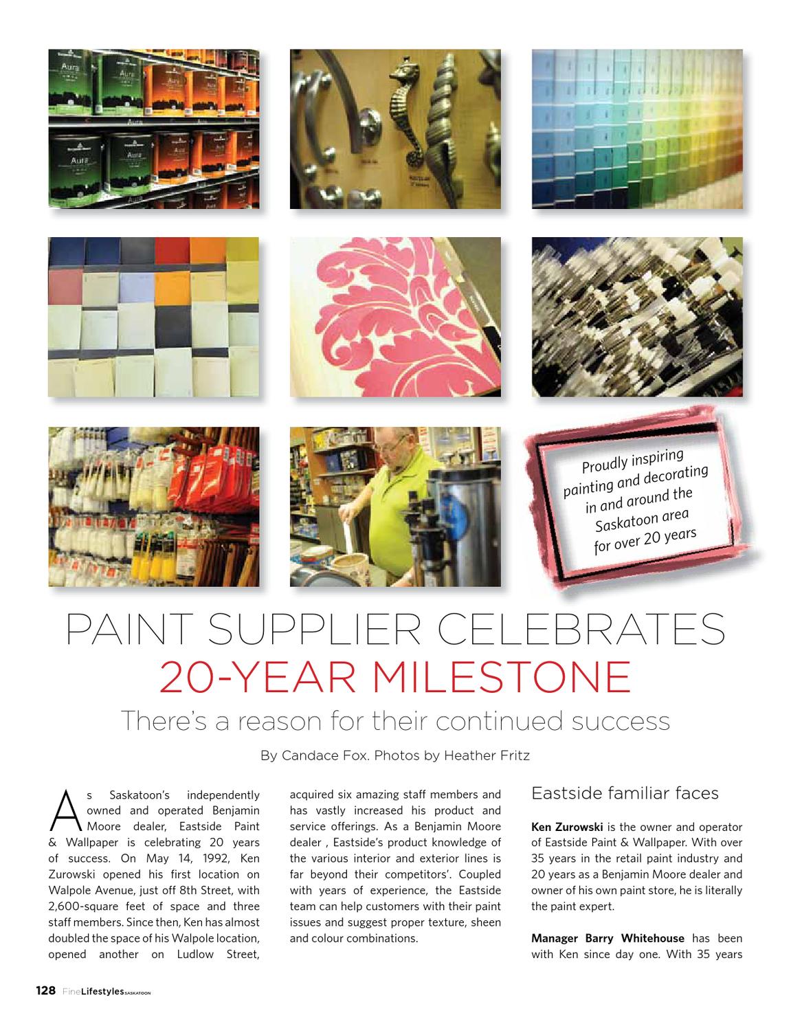 Description: A magazine cover with a variety of different items on it and a man in yellow shirt standing in front of it.