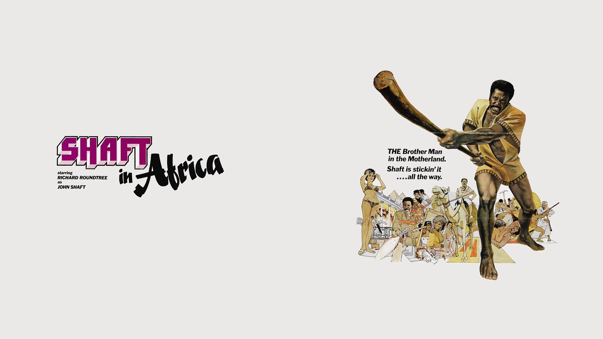 Description: A movie poster with a man holding a baseball bat in his hand and a group of people behind him.