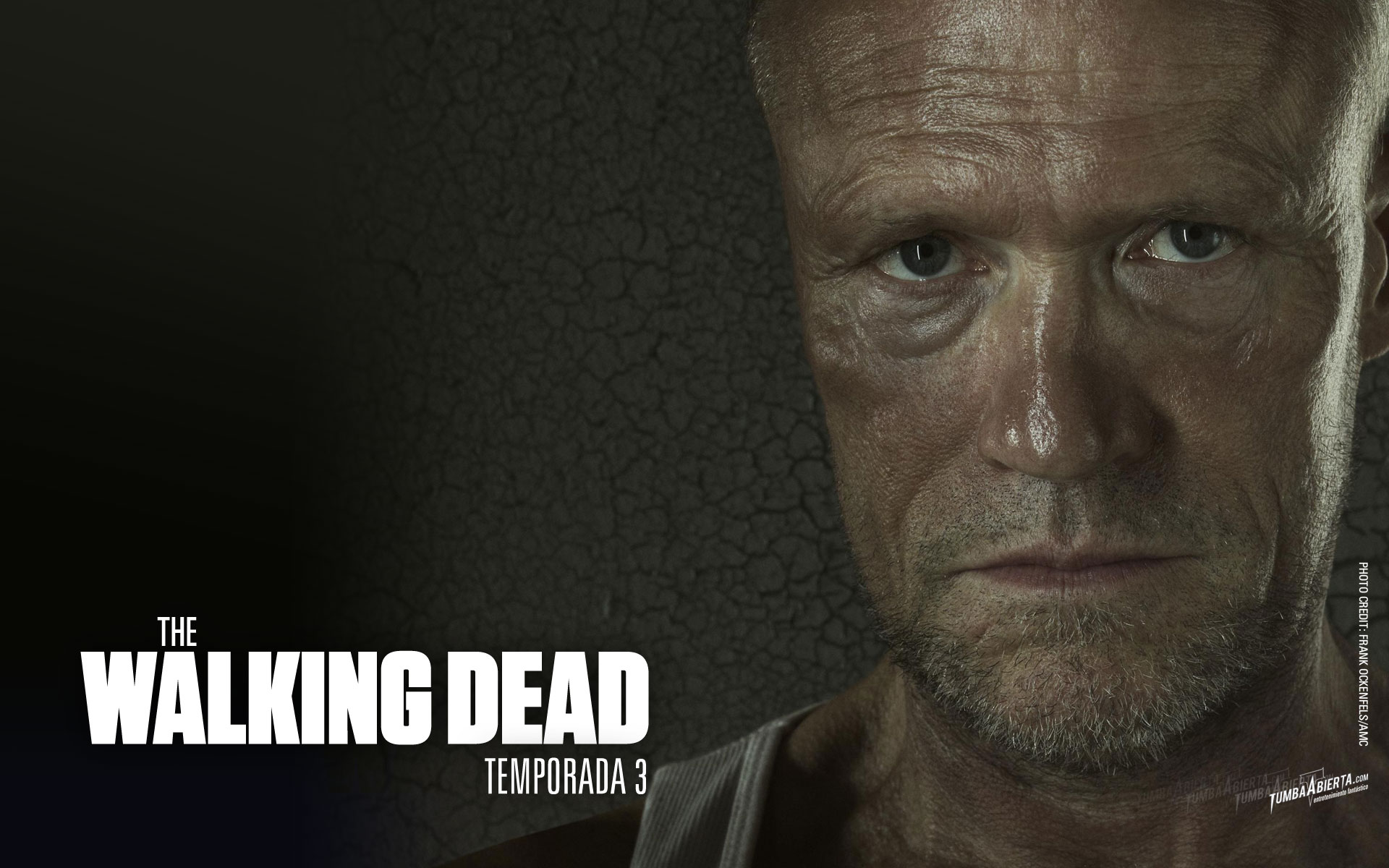 Description: A man with a beard and a beard in a black shirt with the words the walking dead on it.