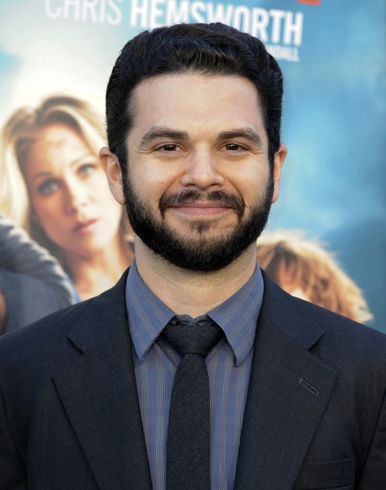 Description: A man with a beard and a suit smiling for the camera at a movie event in front of a poster.