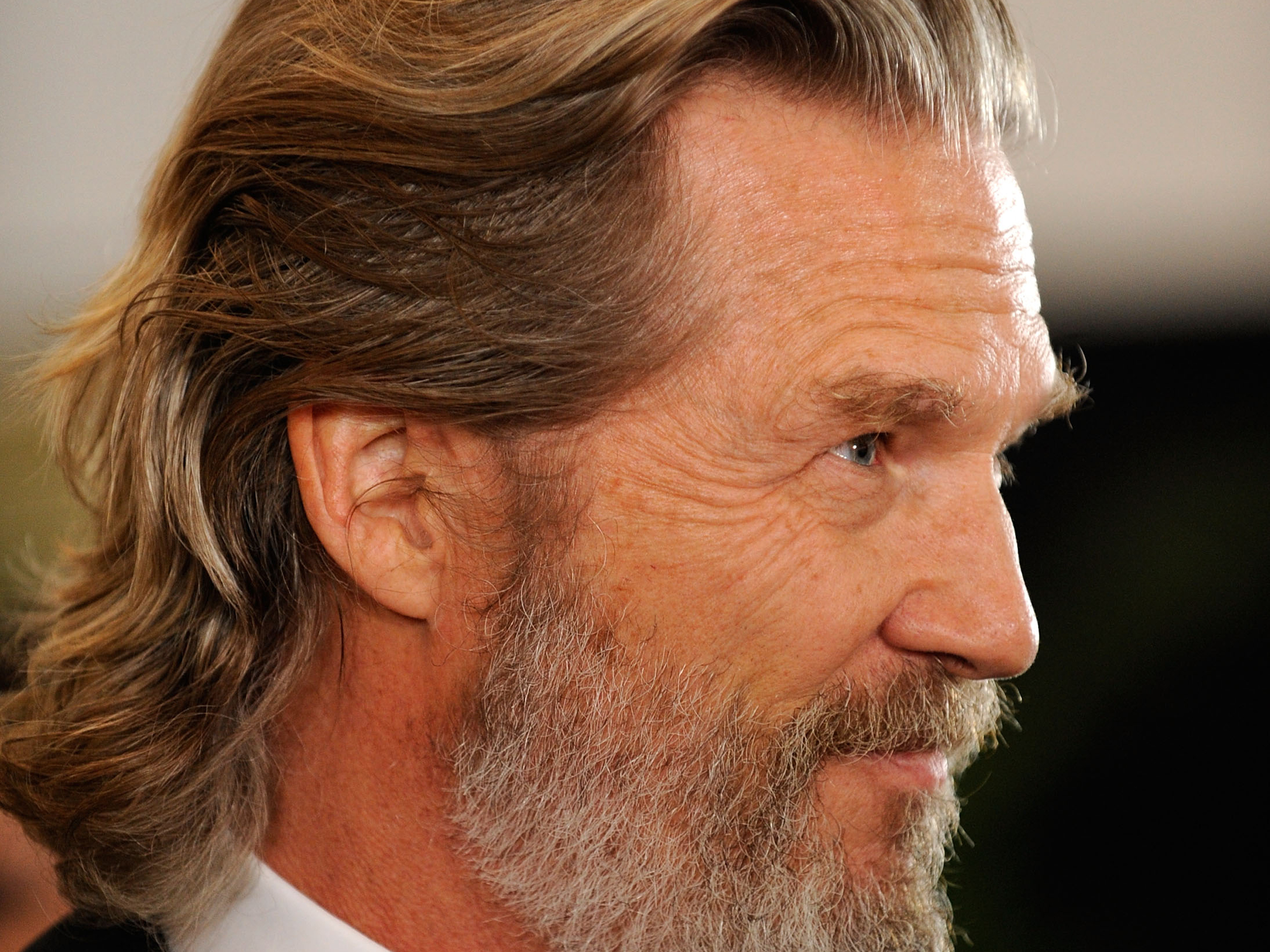 Description: A man with a beard and a suit and tie on a red carpeted room with a white wall.