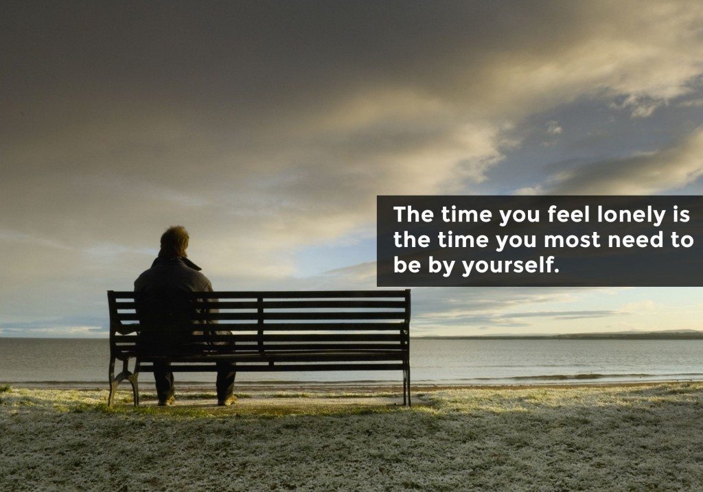 Description: A man sitting on a bench looking out at the ocean with a quote from a man on it that reads.