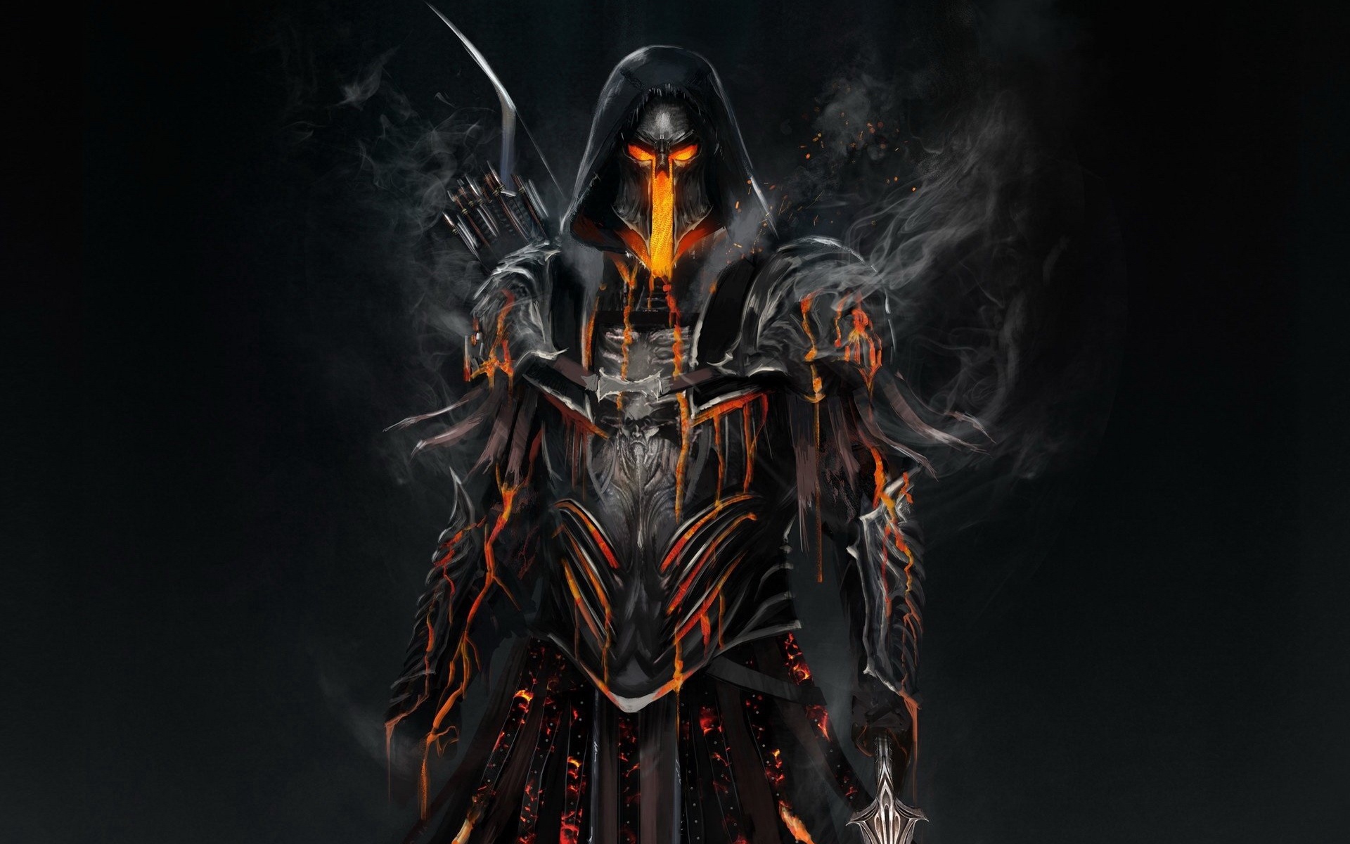 Description: A man in a black outfit with a sword in his hand and a flame in his mouth.