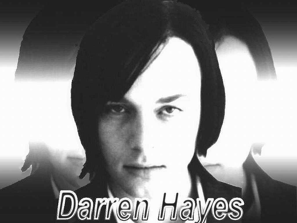 Description: A man with a black jacket and tie in front of a white background with the words darren hays.