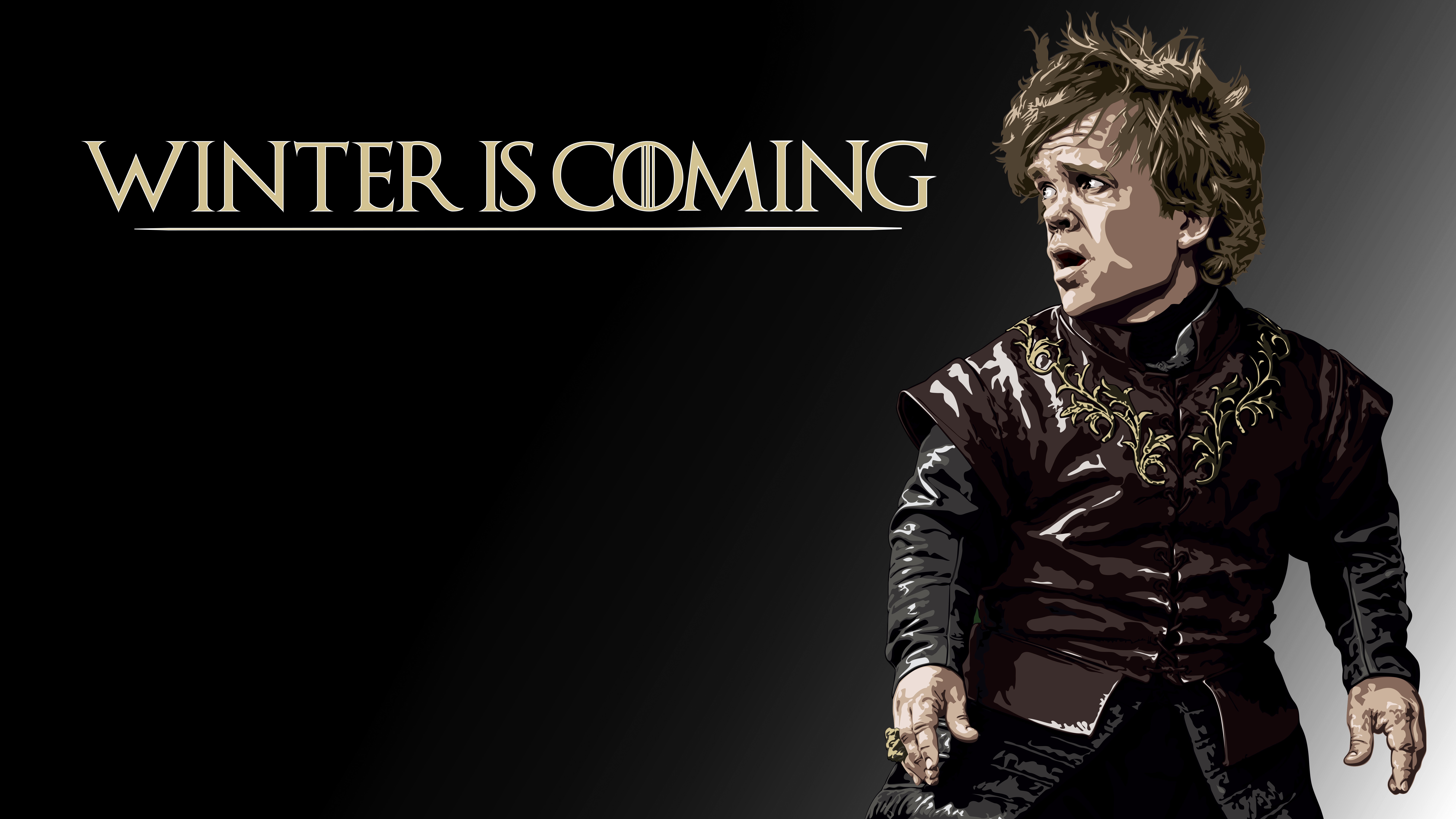 Description: A man in a black outfit with a sword in his hand and a caption that reads winter is coming.