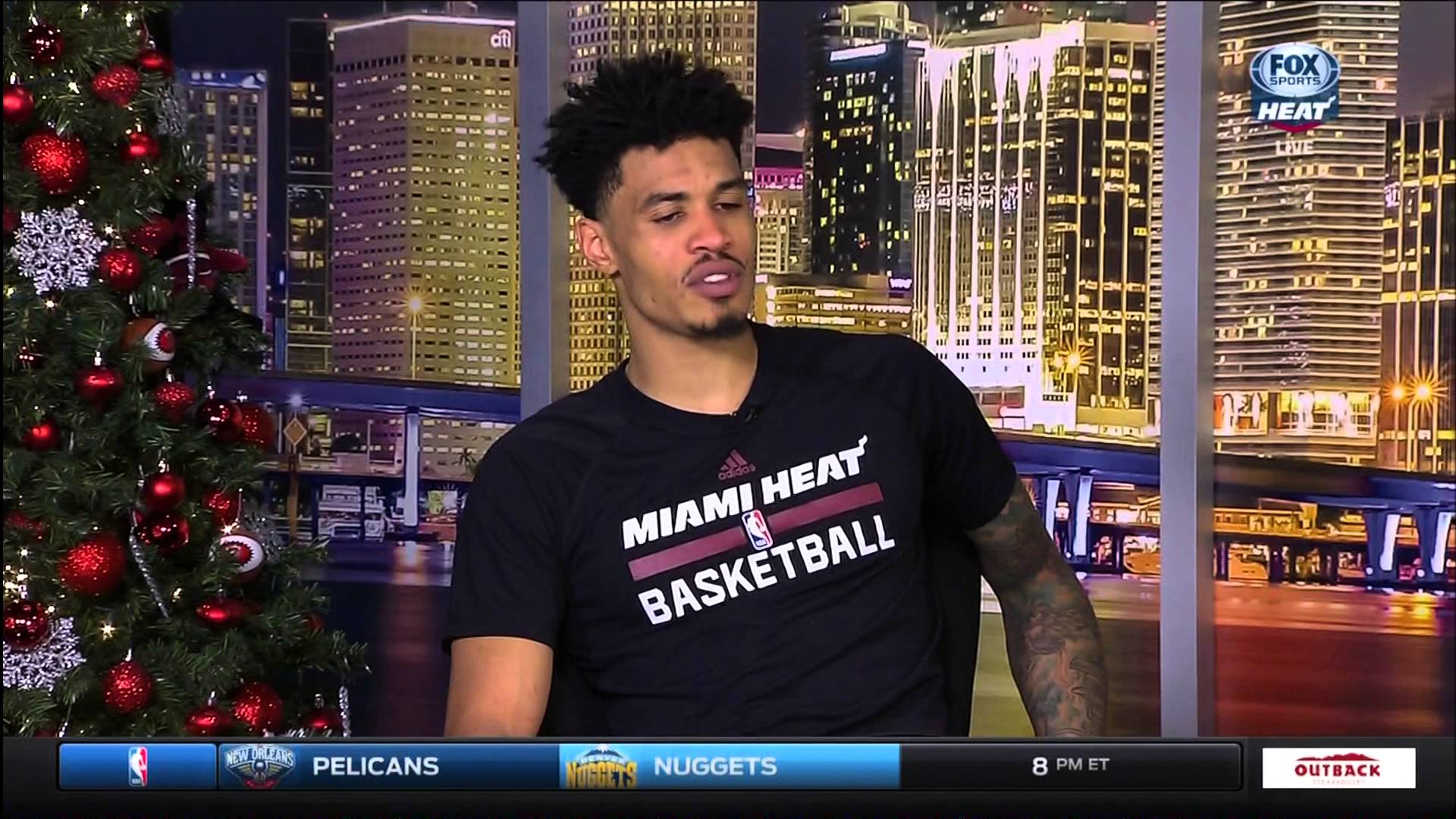 Description: A man in a black shirt is talking to someone on a news show with a christmas tree in the background.