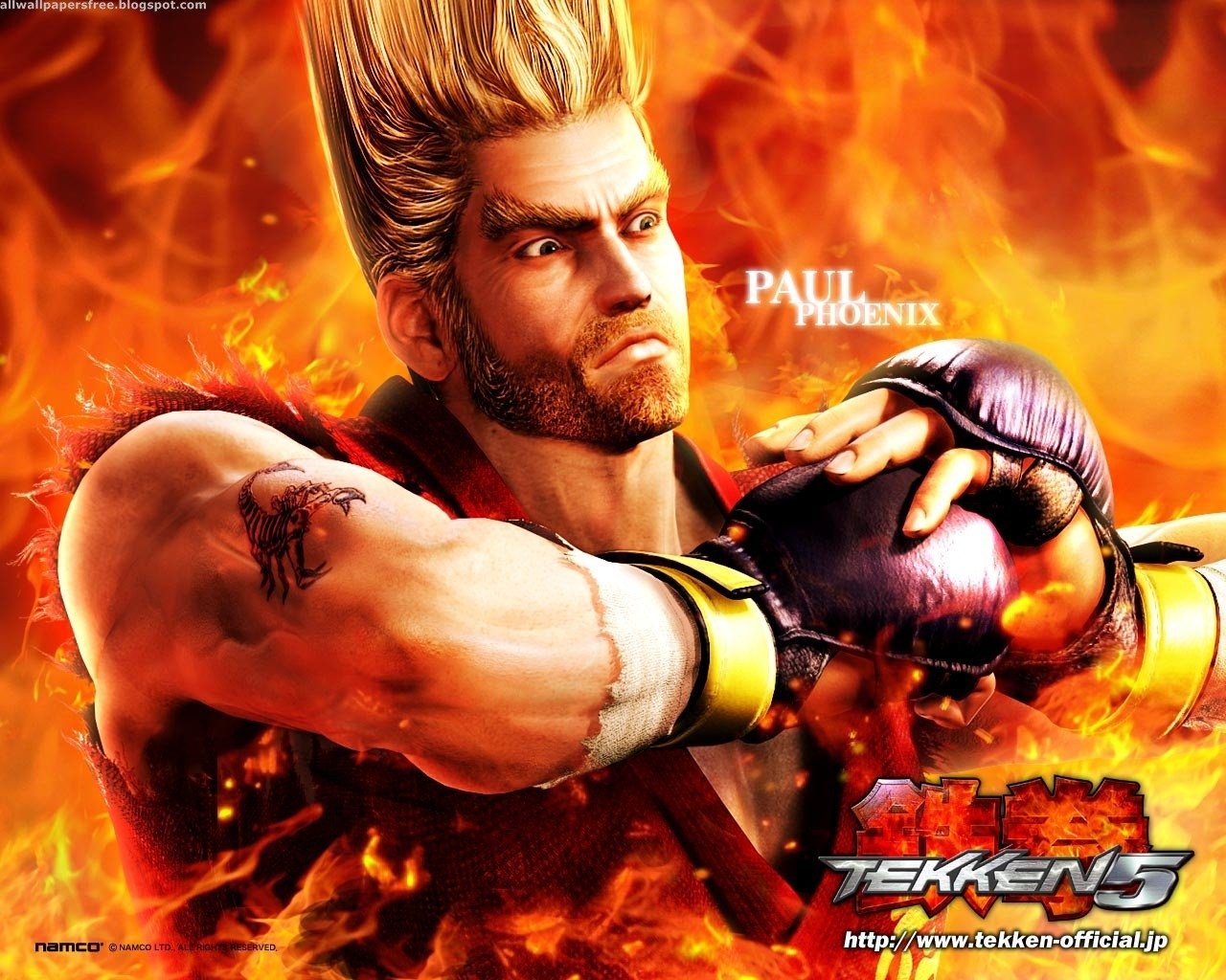 Description: A man with a boxing glove in front of a fire background with the words teken's on it.