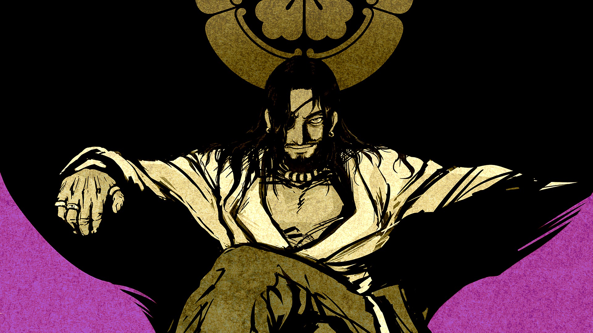 Description: A man sitting on a chair with a clock above him and a purple background behind him with a black and yellow background.