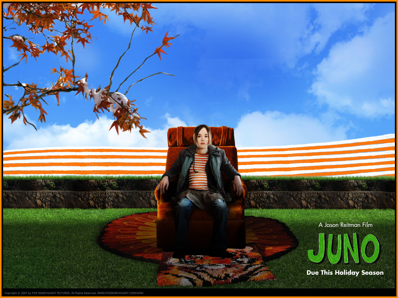 Description: A man sitting in a chair in a field of grass with a tree in the background and a backdrop of orange and white stripes.