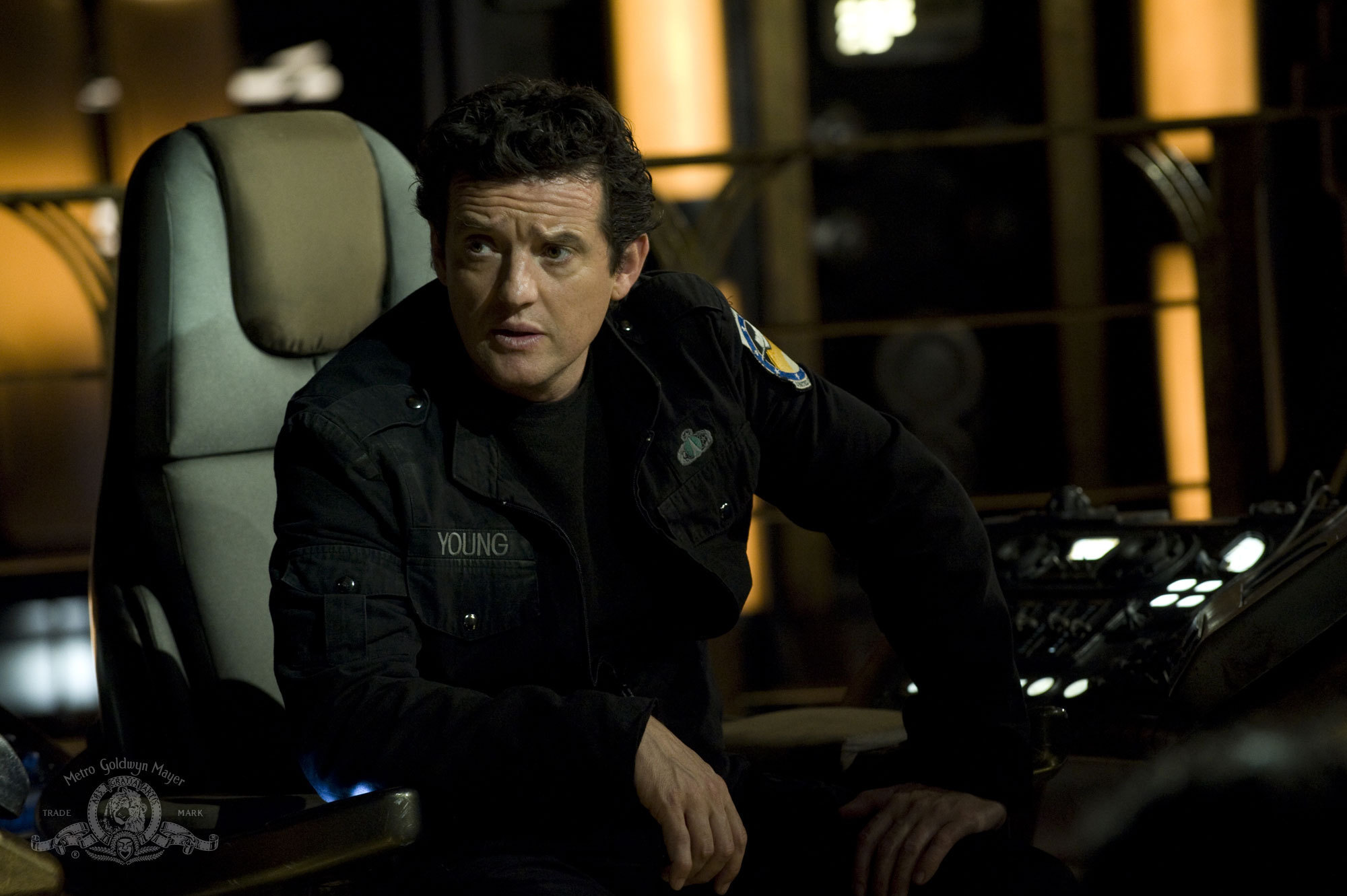 Description: A man sitting in a chair in a room with a laptop computer on it and a police officer standing next to him.