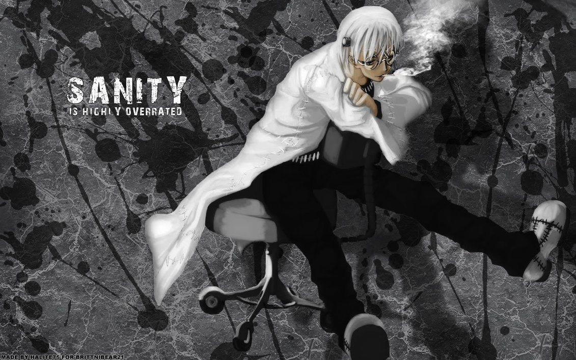 Description: A man sitting on a chair smoking a cigarette in his hand and wearing a white coat and black pants.