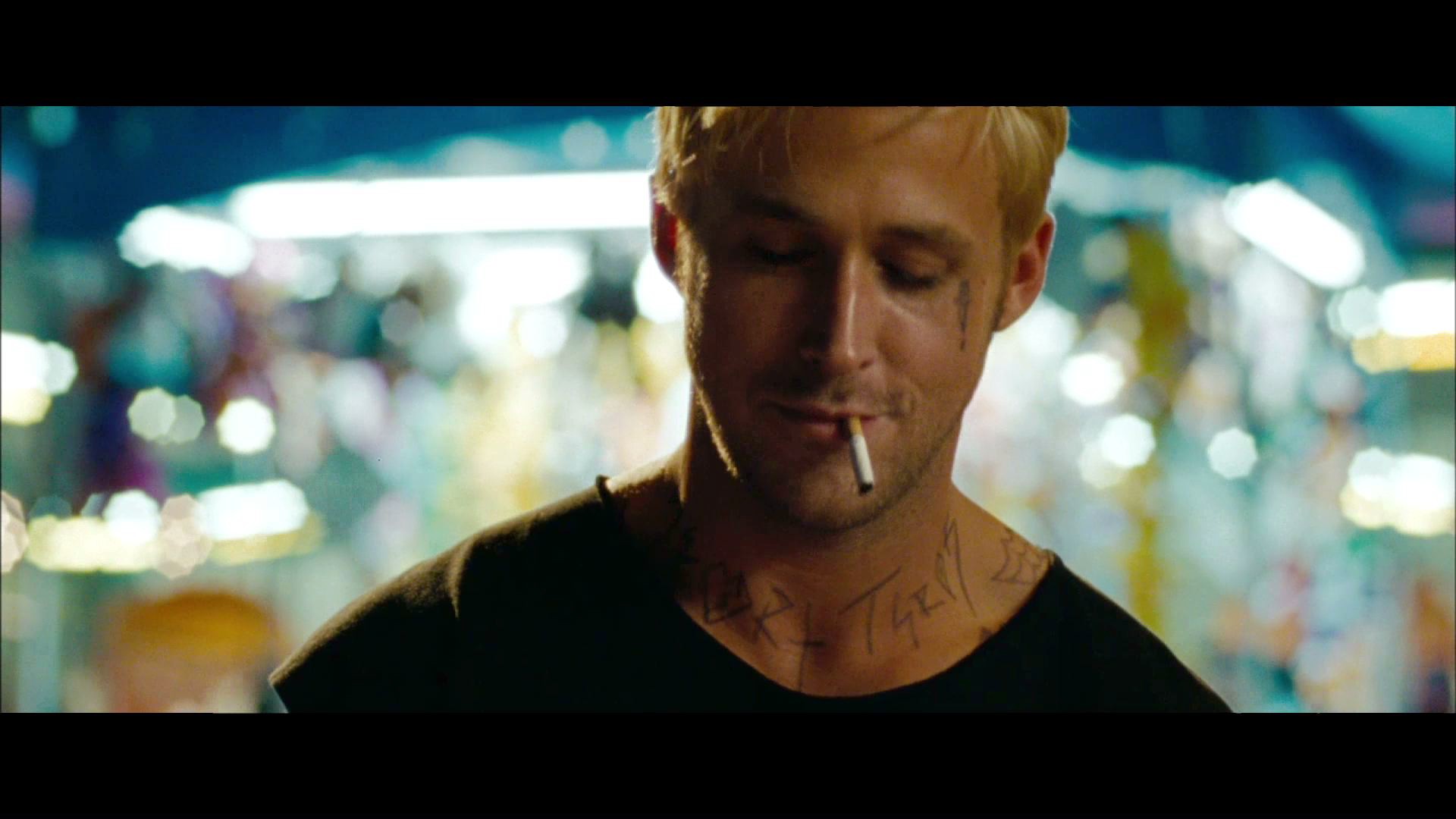 Description: A man with a cigarette in his mouth and a cigarette in his mouth with writing on his chest and chest.
