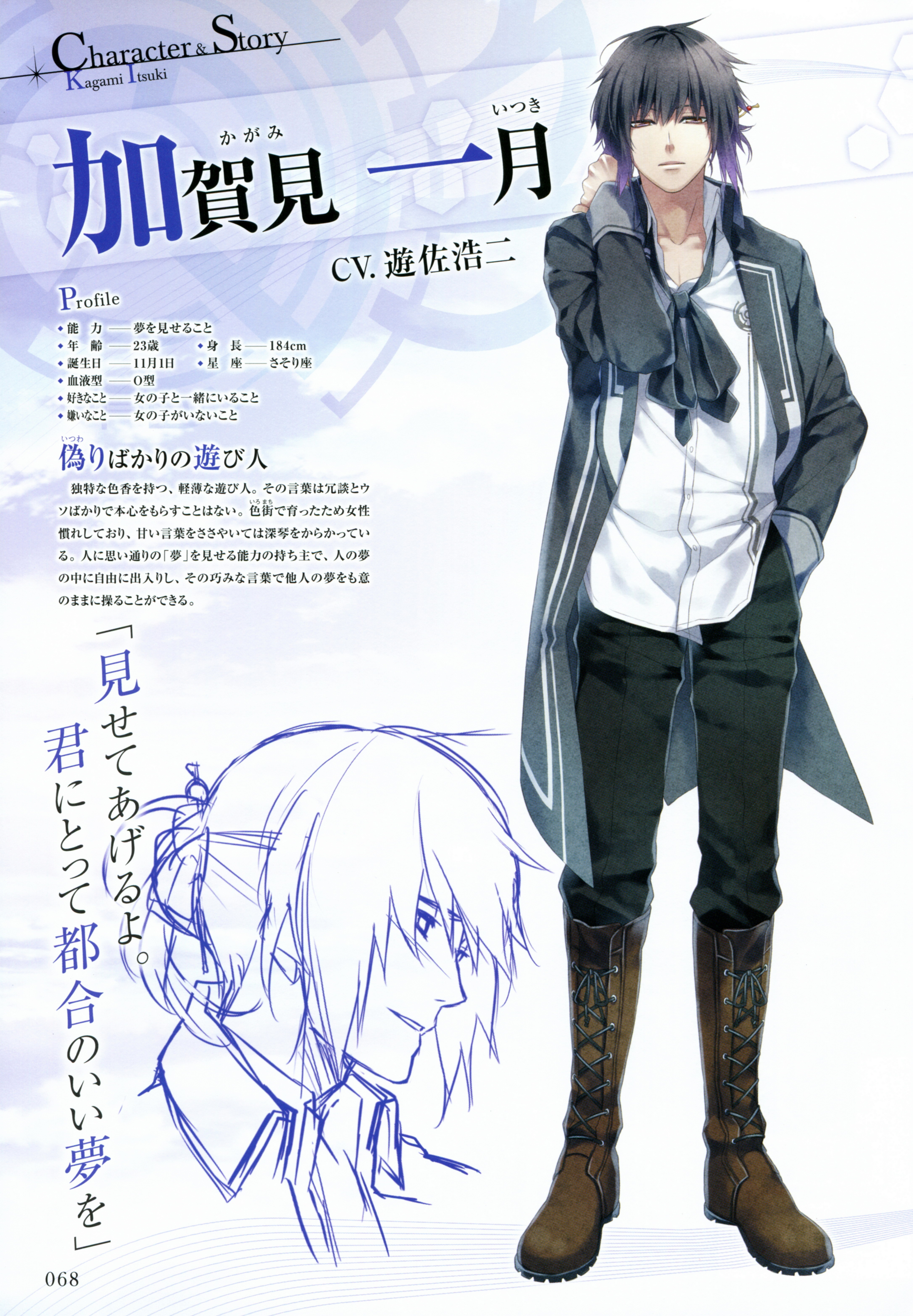 Description: A man in a coat and boots standing in front of a poster with writing on it and a drawing of him.
